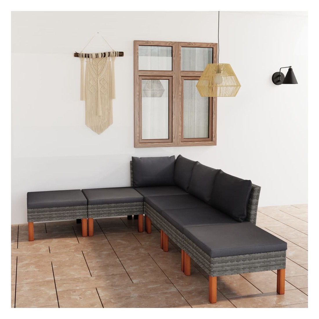 Cet ensemble de salon de jardin élégant et confortable, est un choix idéal pour vous détendre et profiter du beau temps, faire une sieste ou discuter avec votre famille ou vos amis. Doté d’un cadre en acier enduit de poudre recouvert de résine tressée, l'ensemble de canapé est résistant aux intempéries et facile à nettoyer. Les pieds en bois d’eucalyptus massif contribuent à sa robustesse et à sa stabilité. L'ensemble de salon est livré avec des coussins rembourrés pour un confort suprême. Dotée d'une fermeture éclair, la housse des coussins est amovible et lavable. De plus, cet ensemble de canapés d'extérieur peut être facilement déplacé pour s’adapter à n’importe quelle configuration grâce à sa construction légère. Remarque : afin de prolonger la durée de vie des meubles d'extérieur, nous vous recommandons de les protéger avec une housse imperméable.