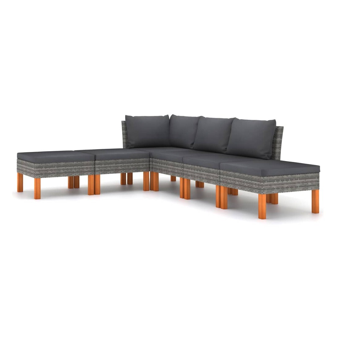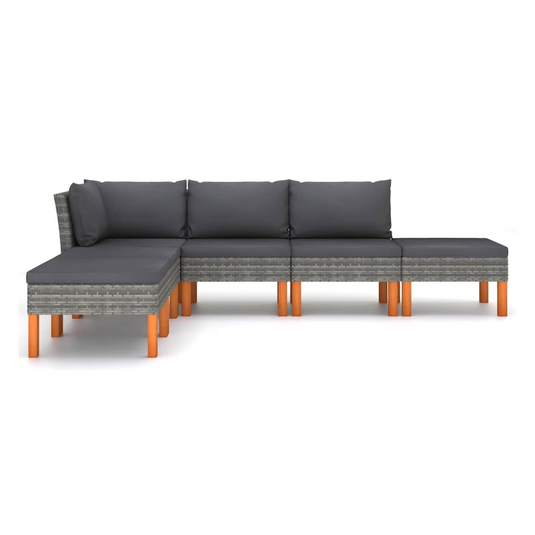 Salon de jardin 6 pcs avec coussins Résine tressée Gris