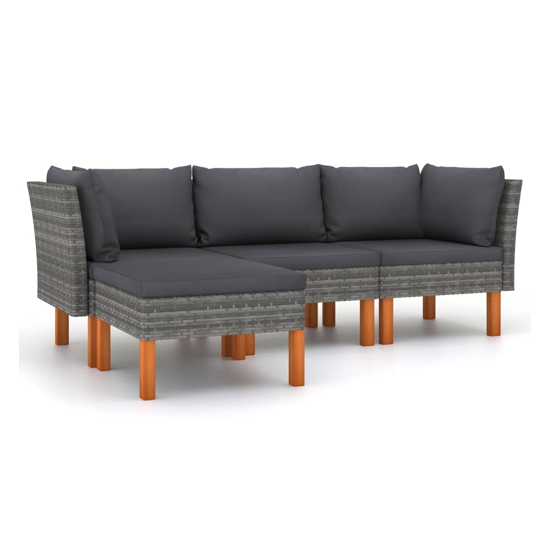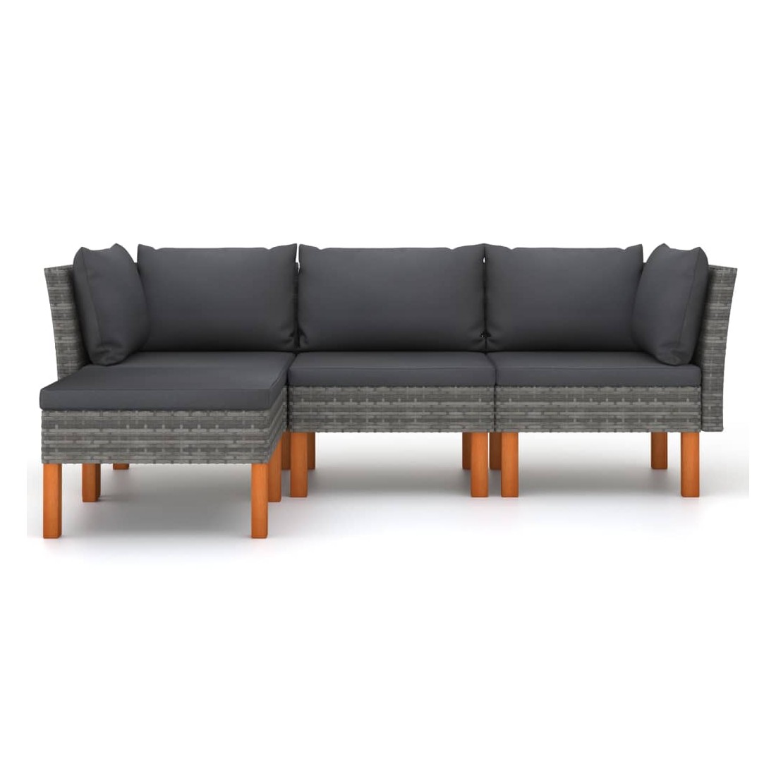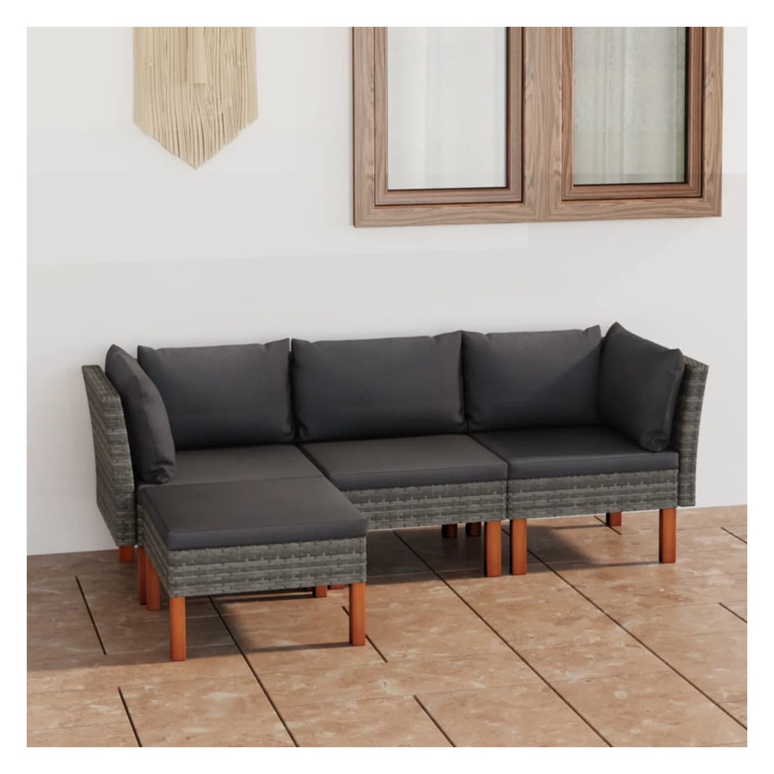 Cet ensemble de salon de jardin élégant et confortable, est un choix idéal pour vous détendre et profiter du beau temps, faire une sieste ou discuter avec votre famille ou vos amis. Doté d’un cadre en acier enduit de poudre recouvert de résine tressée, l'ensemble de canapé est résistant aux intempéries et facile à nettoyer. Les pieds en bois d’eucalyptus massif contribuent à sa robustesse et à sa stabilité. L'ensemble de salon est livré avec des coussins rembourrés pour un confort suprême. Dotée d'une fermeture éclair, la housse des coussins est amovible et lavable. De plus, cet ensemble de canapés d'extérieur peut être facilement déplacé pour s’adapter à n’importe quelle configuration grâce à sa construction légère. Remarque : afin de prolonger la durée de vie des meubles d'extérieur, nous vous recommandons de les protéger avec une housse imperméable.