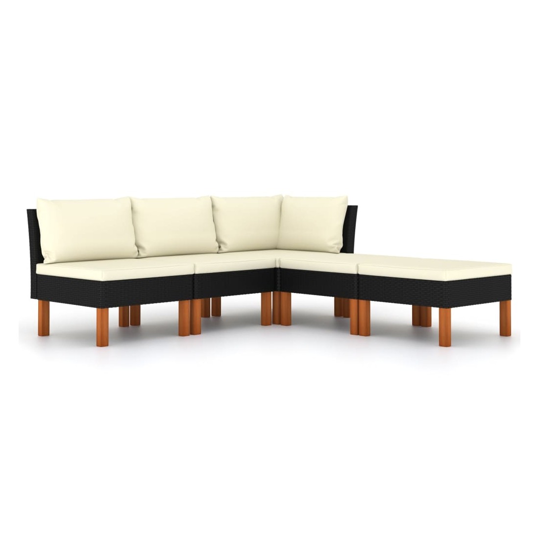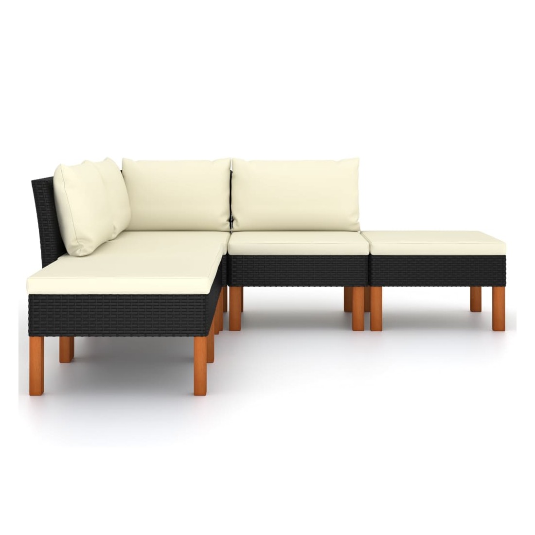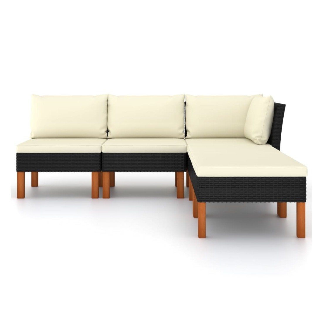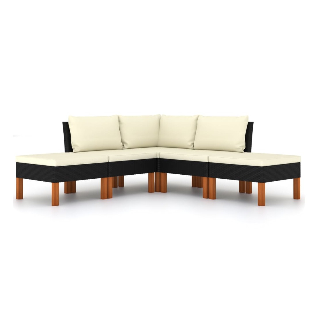 Salon de jardin 5 pcs avec coussins Résine tressée Noir