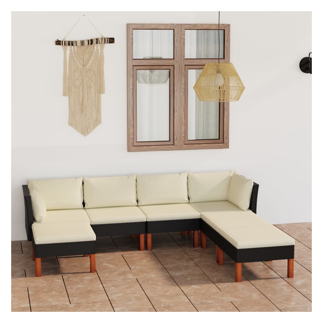 Salon de jardin 7 pcs avec coussins Résine tressée Noir