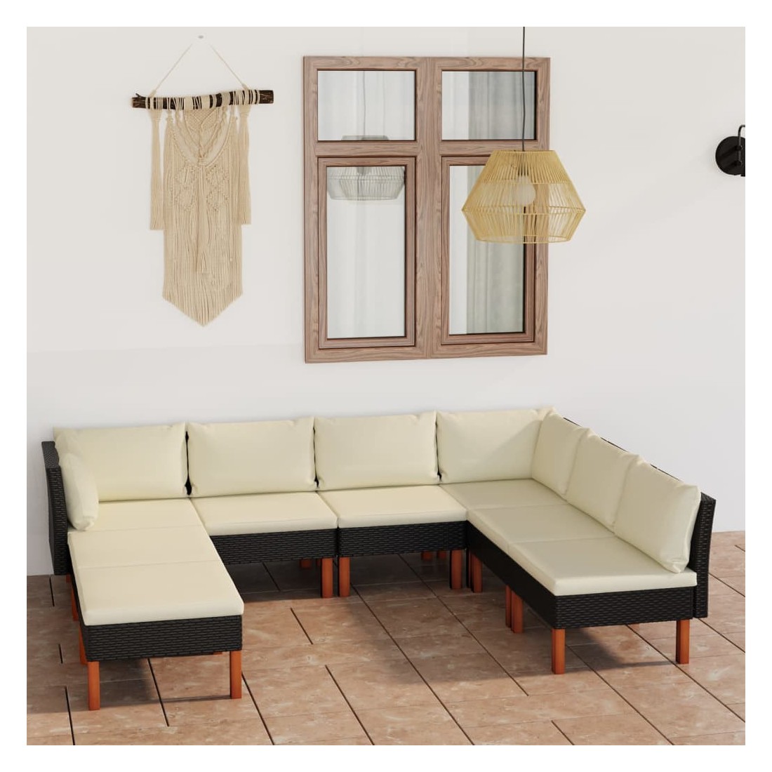 Cet ensemble de salon de jardin élégant et confortable, est un choix idéal pour vous détendre et profiter du beau temps, faire une sieste ou discuter avec votre famille ou vos amis. Doté d’un cadre en acier enduit de poudre recouvert de résine tressée, l'ensemble de canapé est résistant aux intempéries et facile à nettoyer. Les pieds en bois d’eucalyptus massif contribuent à sa robustesse et à sa stabilité. L'ensemble de salon est livré avec des coussins rembourrés pour un confort suprême. Dotée d'une fermeture éclair, la housse des coussins est amovible et lavable. De plus, cet ensemble de canapés d'extérieur peut être facilement déplacé pour s’adapter à n’importe quelle configuration grâce à sa construction légère. Remarque : afin de prolonger la durée de vie des meubles d'extérieur, nous vous recommandons de les protéger avec une housse imperméable.