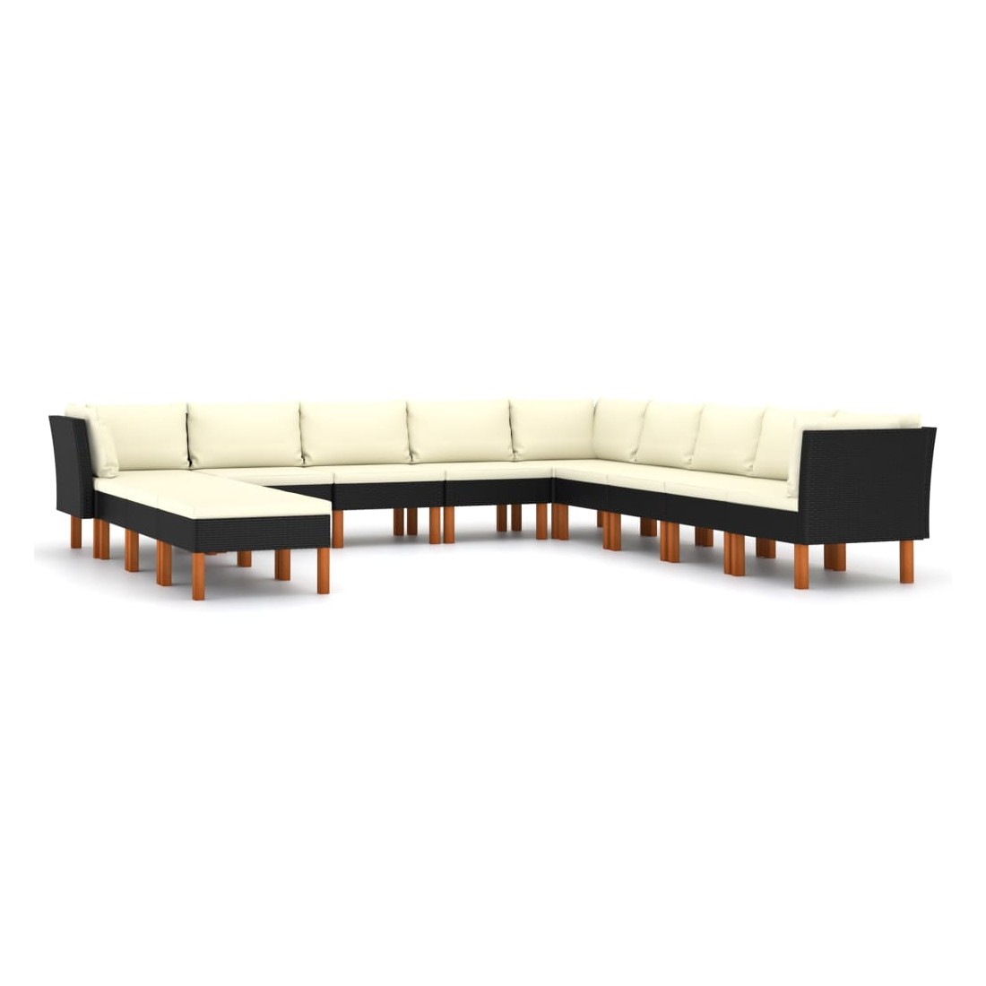 Salon de jardin 12 pcs avec coussins Résine tressée Noir