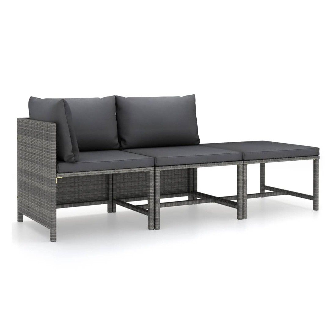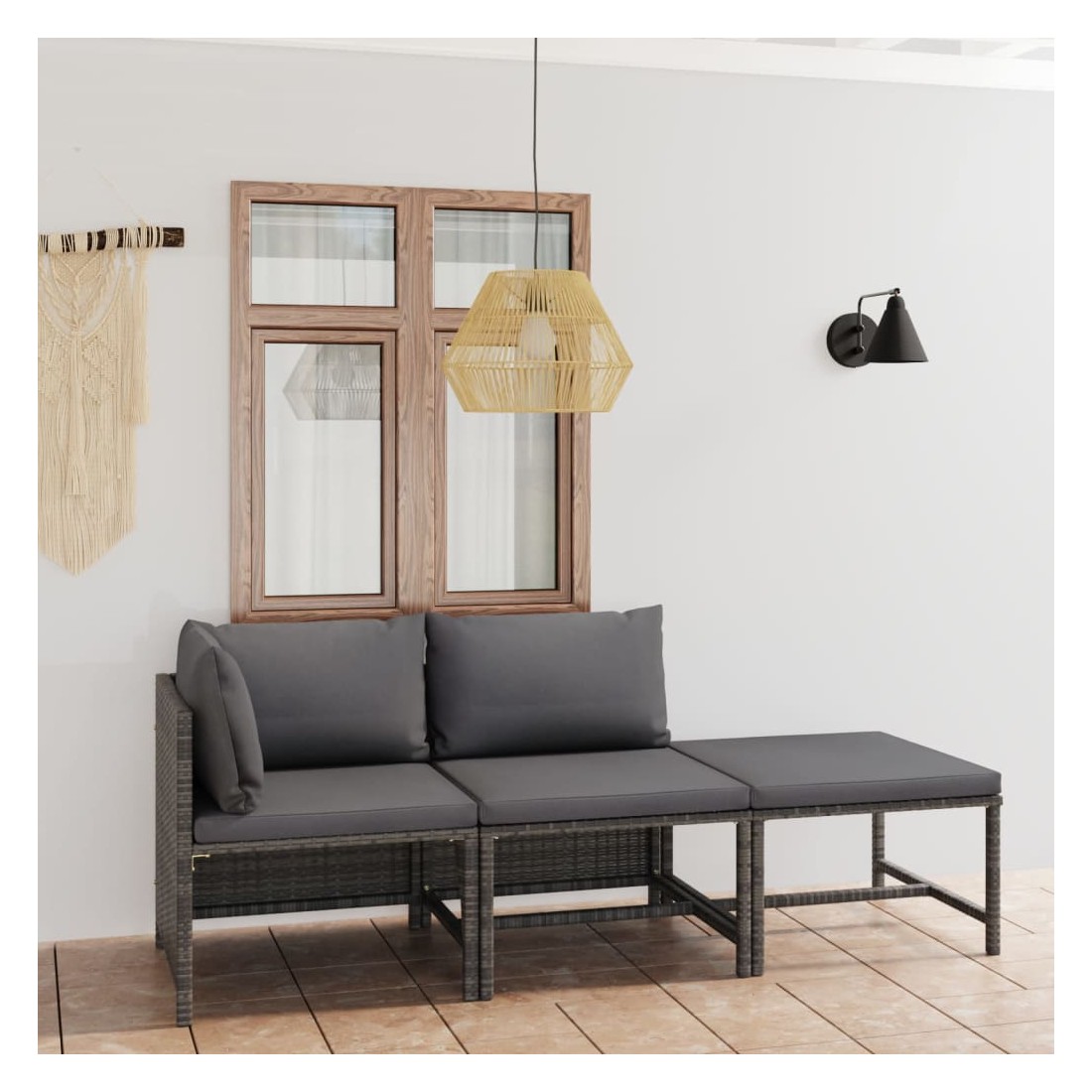 Salon de jardin 3 pcs avec coussins Résine tressée Gris