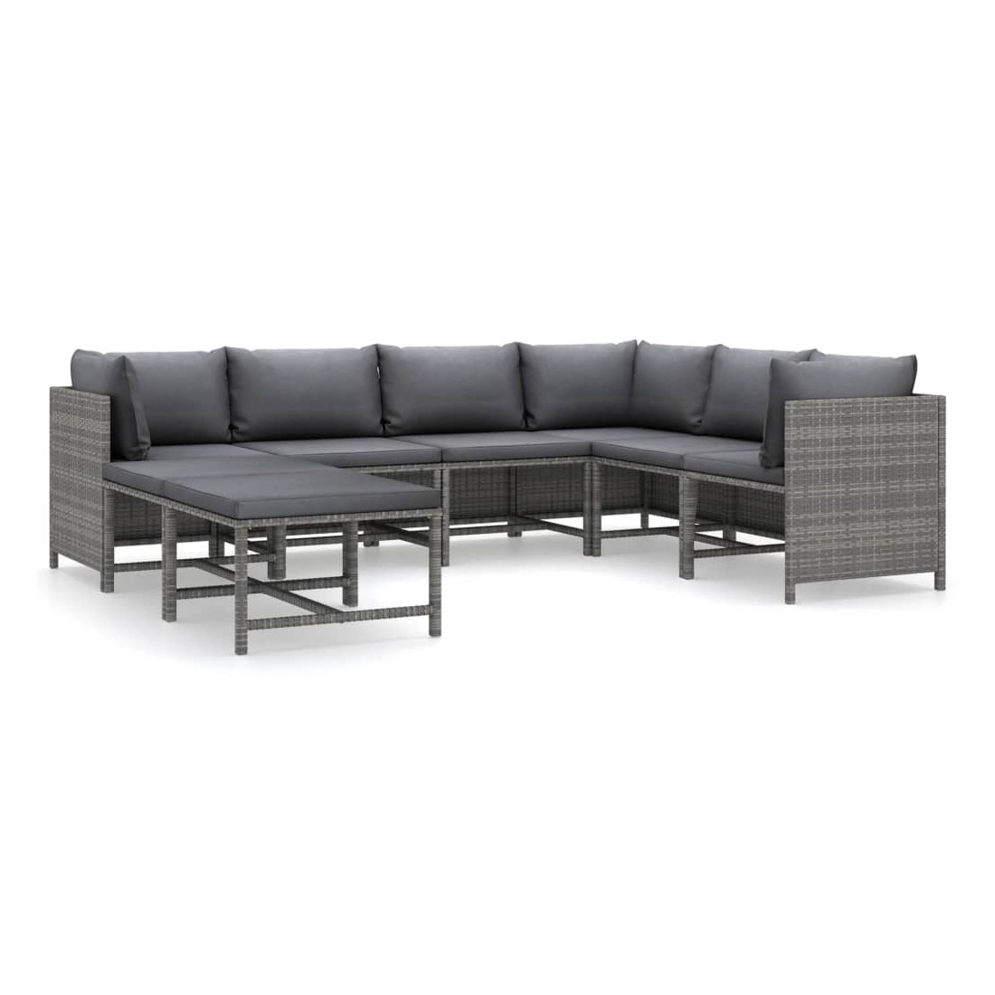 Salon de jardin 8 pcs avec coussins Résine tressée Gris