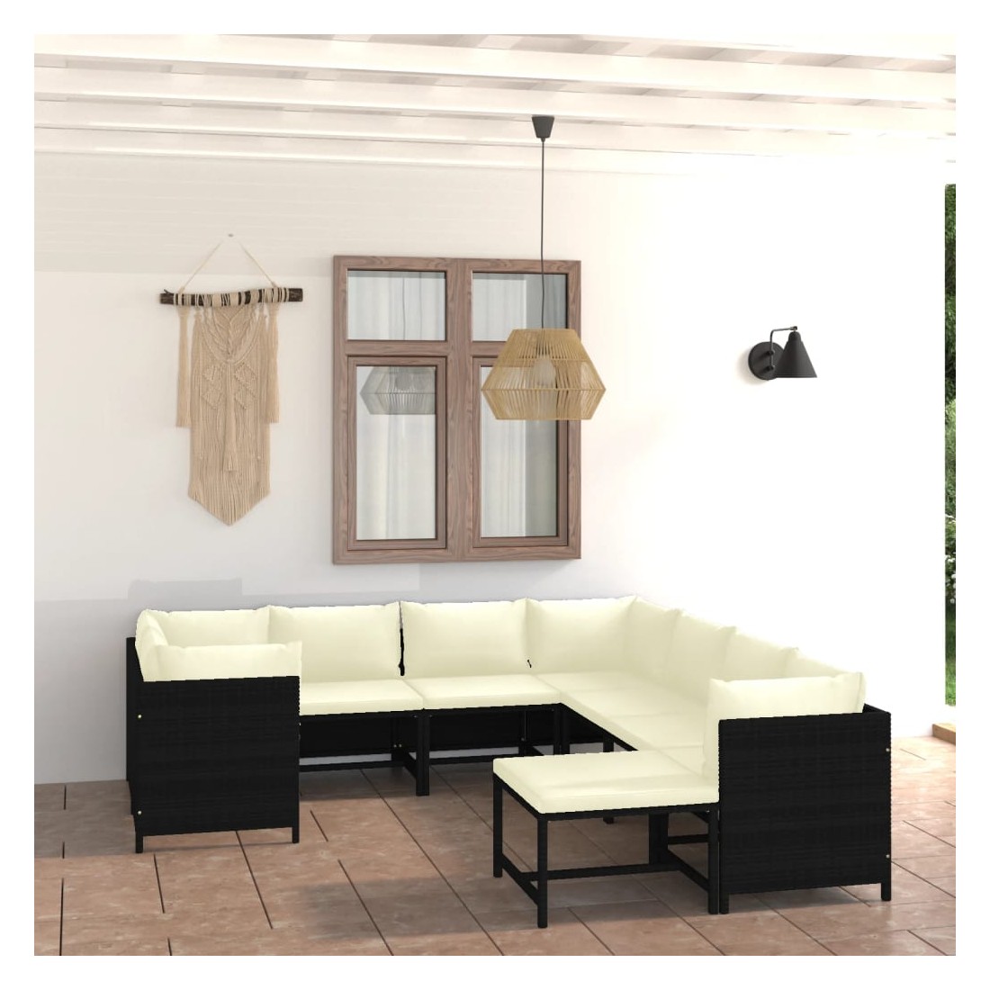 Salon de jardin 9 pcs avec coussins Résine tressée Noir