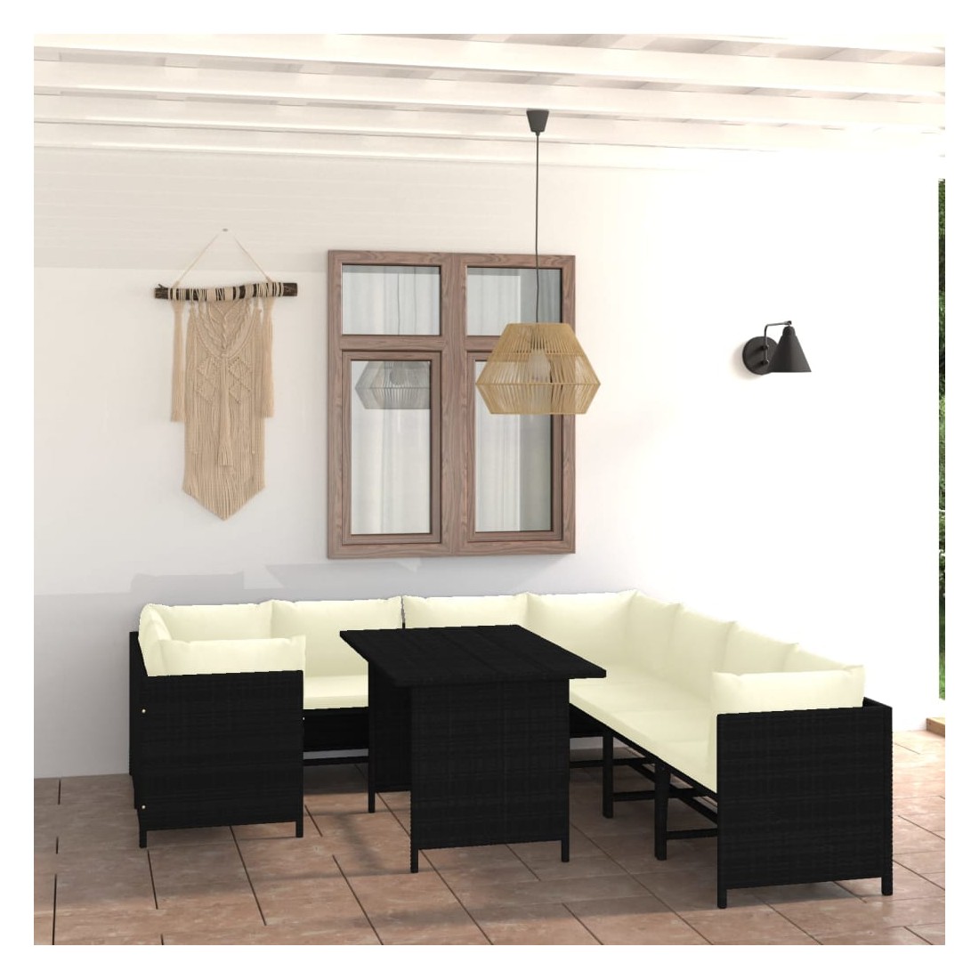 Salon de jardin 9 pcs avec coussins Résine tressée Noir