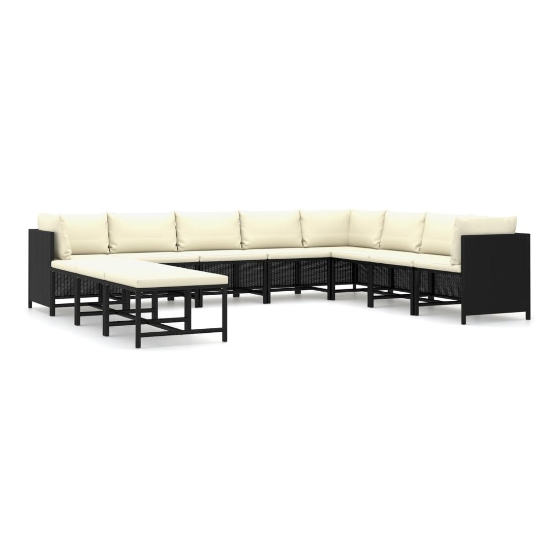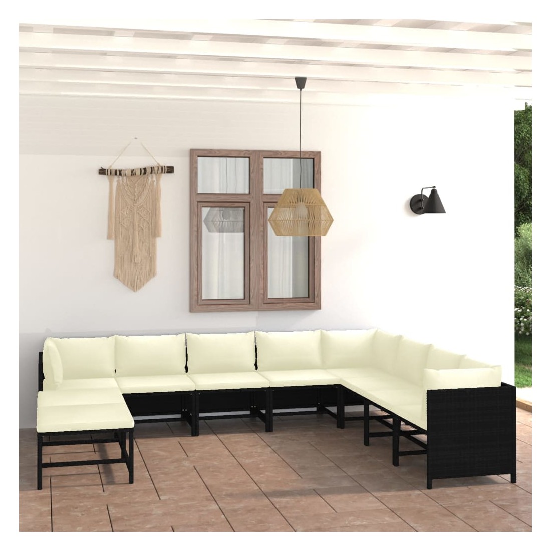 Salon de jardin 11 pcs avec coussins Résine tressée Noir