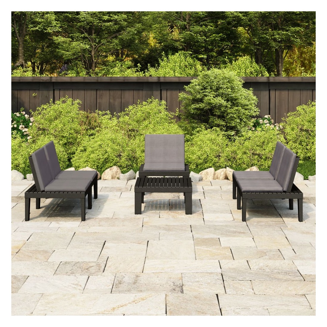 Ce salon de jardin est un excellent choix pour vous détendre et profiter du beau temps, faire une sieste ou discuter avec votre famille ou vos amis. L’ensemble de salon de jardin est en plastique, ce qui le rend facile à nettoyer et stable. Avec son dessus robuste, la table est idéale pour garder la nourriture et les boissons à portée de main. Le dossier et les coussins ajoutent au confort des sièges d'extérieur.