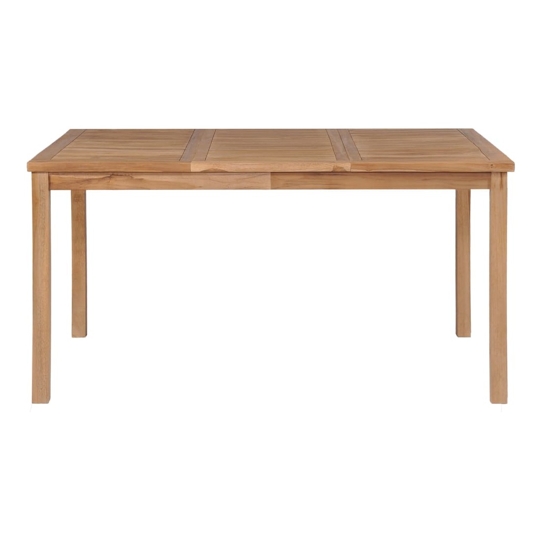 Cet ensemble de salle à manger de jardin en bois ajoute une touche de charme naturel à votre cuisine, jardin ou terrasse. Fabriquée en bois dur de teck extrêmement durable, cette pièce de meuble en teck a été chevronnée, séchée au four puis finement poncée pour lui donner un aspect très lisse. Le bois de teck est connu pour sa résistance exceptionnelle aux intempéries, ce qui le rend bien plus adapté aux meubles de jardin que tout autre type de bois. Le bois de teck est le choix idéal si vous souhaitez acheter une pièce de meubles de jardin durable. Une belle finition à base d'eau est appliquée pour donner au bois une couleur chaude. Grâce au dessus de table extra épais et aux grands pieds, cette table en bois solide est très durable et peut accueillir confortablement vos invités. Les