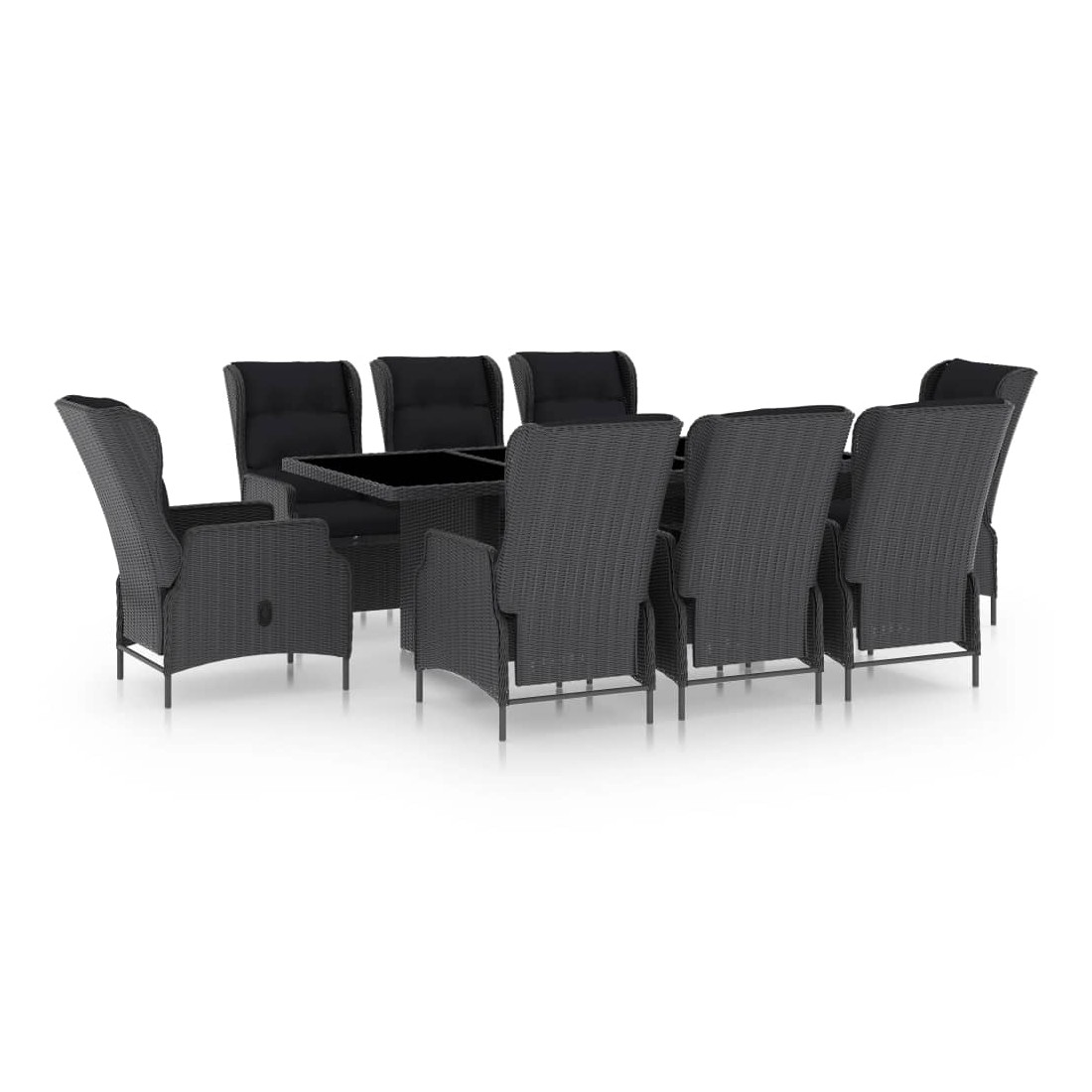 Cet élégant ensemble à manger d'extérieur est une combinaison parfaite de style et de fonctionnalité et est destiné à être le point de mire de votre jardin, balcon ou patio. L'ensemble de meubles est fait de résine tressée ronde légère et à faible entretien, ce qui le rend parfait pour une utilisation à l'extérieur, facile à nettoyer avec un chiffon humide. Grâce à sa structure en acier enduit de poudre, les fauteuils et la table sont stables et durables. Le dessus de table en verre ajoute une touche de luxe à votre espace extérieur, parfait pour dîner ou placer des objets décoratifs. La chaise inclinable avec des coussins épais offre un endroit exceptionnellement confortable et agréable pour vous détendre. En outre, le dossier peut être facilement ajusté selon votre désir. Remarque : Nous vous recommandons de couvrir l'ensemble pendant la pluie, la neige ou le gel.