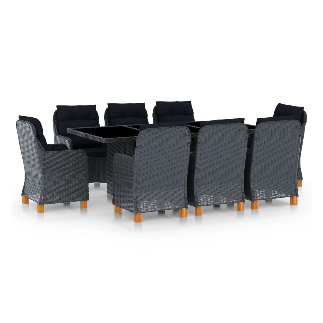 Mobilier à dîner 9 pcs avec coussins Résine tressée Gris foncé