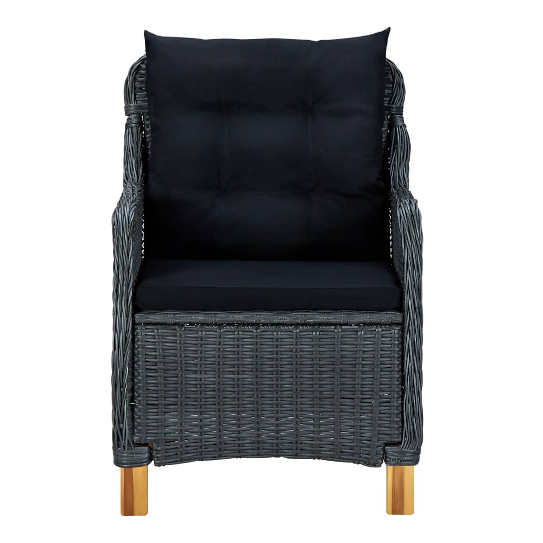 Cet ensemble à manger d'extérieur est une combinaison parfaite de style et de fonctionnalité et est destiné à être le point de mire de votre jardin, balcon ou patio. L’ensemble de meubles est fait de résine tressée ronde légère et peu exigeante d’entretien, ce qui le rend parfait pour une utilisation à l'extérieur, facile à nettoyer avec un chiffon humide. Grâce à la structure en acier enduit de poudre, les fauteuils et la table sont stables et durables. Le dessus de table solide est parfait pour placer ou afficher vos différents essentiels. Les coussins bien rembourrés ajoutent du confort supplémentaire pendant votre temps de détente. La housse de coussin est équipée d'une fermeture éclair, amovible et lavable. De plus, les pieds en bois d’acacia massif ajoutent à la robustesse et à l