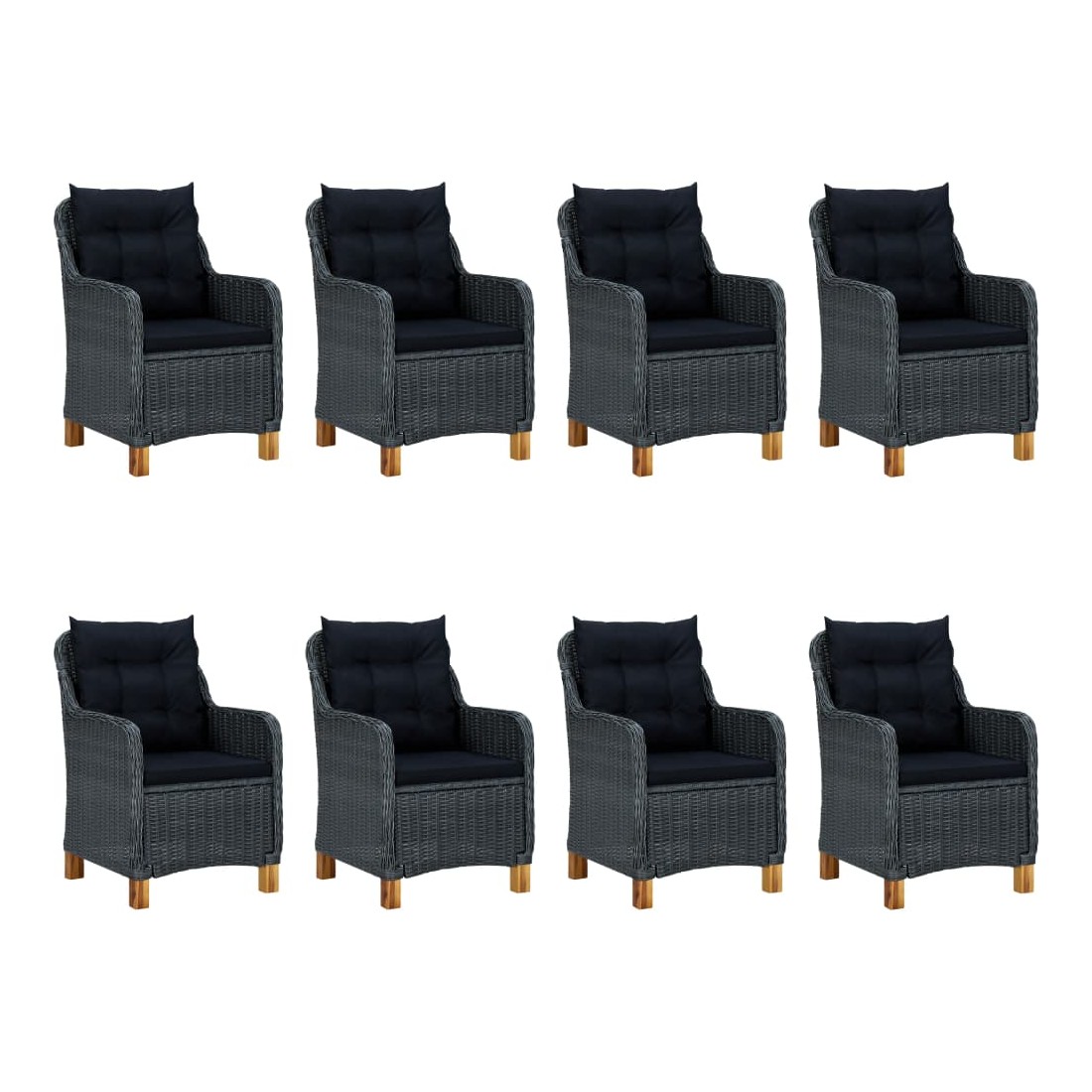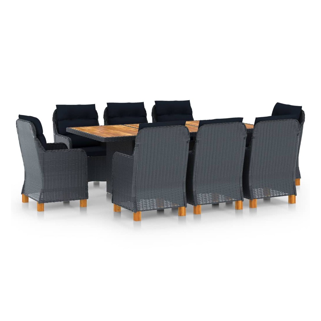 Ensemble à manger d'extérieur 9 pcs et coussins résine tressée