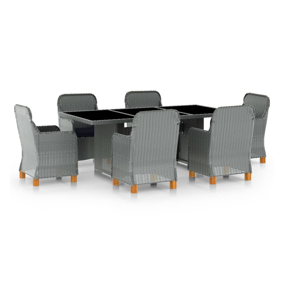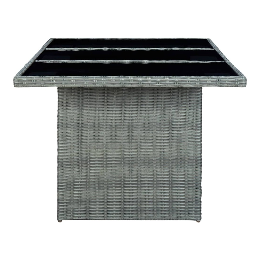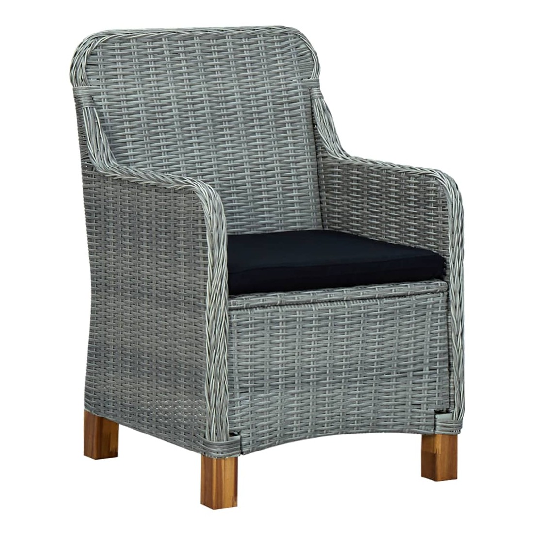 Cet ensemble à manger d'extérieur est une combinaison parfaite de style et de fonctionnalité et est destiné à être le point de mire de votre jardin, balcon ou patio. L’ensemble de meubles est fait de résine tressée ronde légère et peu exigeante d’entretien, ce qui le rend parfait pour une utilisation à l'extérieur, facile à nettoyer avec un chiffon humide. Grâce à la structure en acier enduit de poudre, les fauteuils et la table sont stables et durables. Le dessus de table solide est parfait pour placer ou afficher vos différents essentiels. Les coussins bien rembourrés ajoutent du confort supplémentaire pendant votre temps de détente. La housse de coussin est équipée d'une fermeture éclair, amovible et lavable. De plus, les pieds en bois d’acacia massif ajoutent à la robustesse et à la stabilité des chaises. Cet ensemble de meubles est facile à déplacer grâce à la construction légère. Remarque : Nous vous recommandons de couvrir l'ensemble pendant la pluie, la neige ou le gel.