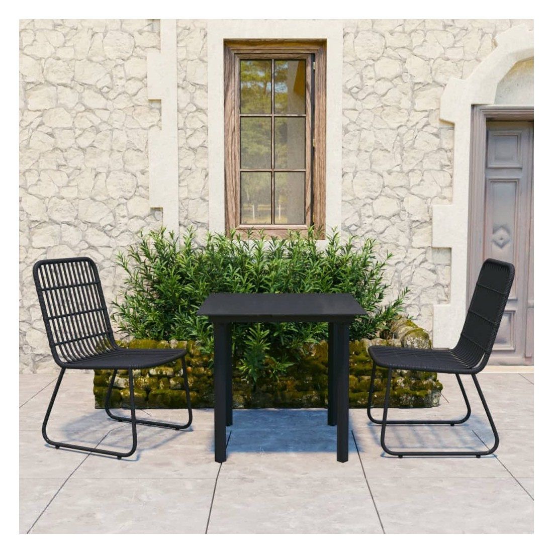 Ensemble à manger d'extérieur 3 pcs résine tressée et verre