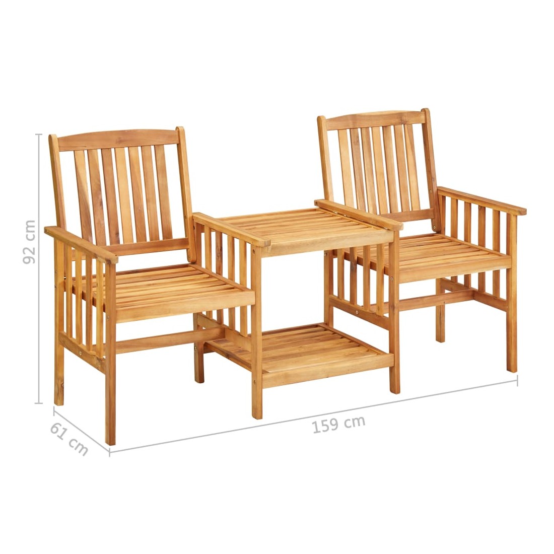 Laissez-vous emporter par une merveilleuse heure du thé avec cet ensemble de bistrot en bois rustique. Il apportera une touche vraiment conviviale et accrocheuse à votre jardin et votre terrasse. La table et les chaises sont en bois d'acacia massif avec une finition à l'huile, ce qui leur permet d'être extrêmement stables et robustes. Le dessus de table robuste et l'étagère inférieure sont idéaux pour ranger vos tasses, livres et autres petits objets. Et les dossiers et les accoudoirs des chaises garantissent une expérience d'assise reposante. De plus, grâce à sa finition à l'huile, le meuble est facile à nettoyer avec un chiffon humide. Les coussins ajoutent un confort supplémentaire. Chaque coussin comporte deux jeux de cordes pour le fixer fermement sur l'ensemble de bistro. Remarque : afin de prolonger la durée de vie des meubles d'extérieur, nous vous recommandons de les protéger avec une housse imperméable.
