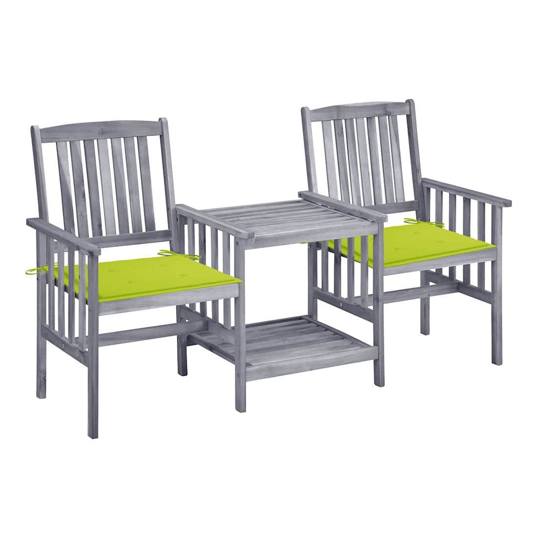 Chaises de jardin avec table à thé et coussins Acacia solide