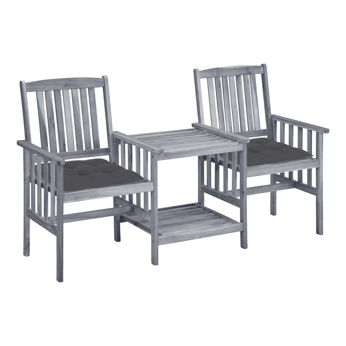 Chaises de jardin avec table à thé et coussins Acacia solide