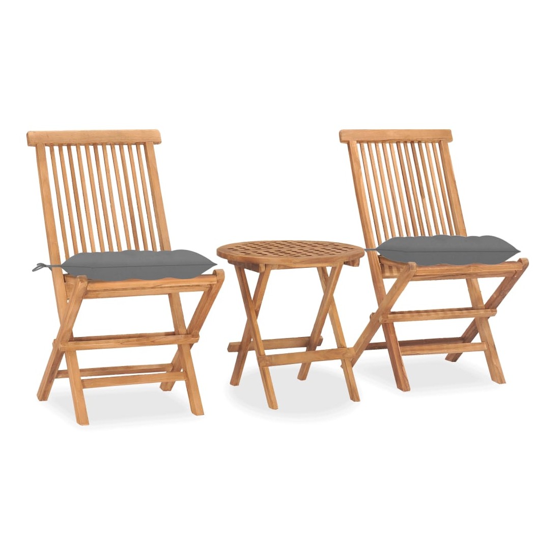 Ensemble à manger d'extérieur pliable avec coussin 3 pcs Teck