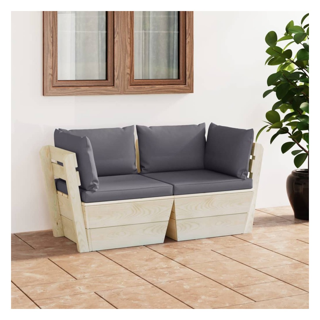 Canapé palette à 2 places de jardin avec coussins Bois d'épicéa