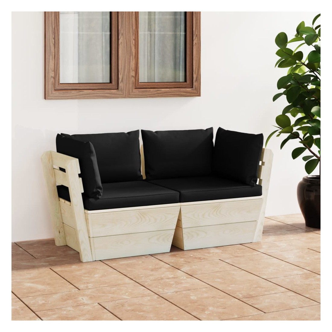 Canapé palette à 2 places de jardin avec coussins Bois d'épicéa