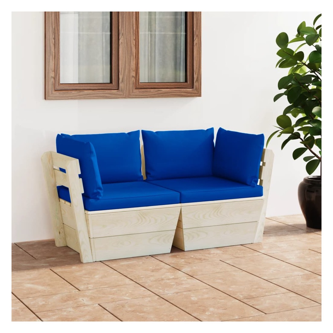 Ce canapé palette à 2 places de jardin à la mode avec coussins est un excellent choix pour vous détendre, profiter du beau temps, faire une sieste ou discuter en famille ou entre amis. Avec son design intemporel de palette, ce canapé en bois ajoute une touche de charme rustique à votre terrasse, jardin ou salon. Le canapé d’extérieur est en bois d’épicéa imprégné, ce qui le rend durable et stable. Ce canapé a une construction solide et nécessite peu d’entretien. Grâce à la tapisserie 100 % polyester et au rembourrage épais, les coussins palette sont doux et offrent le plus grand confort. Il est idéal pour les soirées cinéma en famille, jouer à des jeux vidéo et profiter du beau temps sur le porche. Veuillez noter que le bois est un produit naturel et peut présenter des légères imperfections.