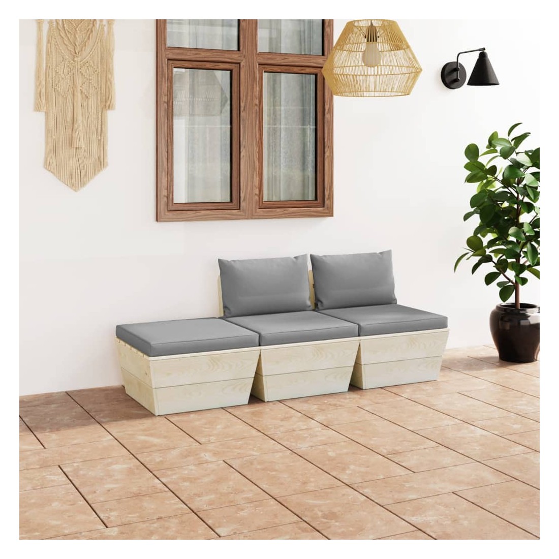 Cet ensemble de salon de jardin palette de 3 pièces à la mode avec coussins est un excellent choix pour vous détendre et profiter du bon temps, faire une sieste ou discuter avec votre famille ou vos amis. L’ensemble de salon en bois, avec un design de palette intemporel, ajoute une touche de charme rustique à votre patio, jardin ou salon. L’ensemble de salon de jardin est en bois d'épicéa imprégné, ce qui le rend durable et stable. Cet ensemble de canapés de patio présente une construction solide et nécessite peu d’entretien. Grâce à la tapisserie 100 % polyester et au rembourrage épais, les coussins de palette sont doux et offrent le plus grand confort. De plus, la conception modulaire permet également de placer l’ensemble dans n’importe quel arrangement selon votre goût. Veuillez noter que le bois est un produit naturel et peut présenter des imperfections.