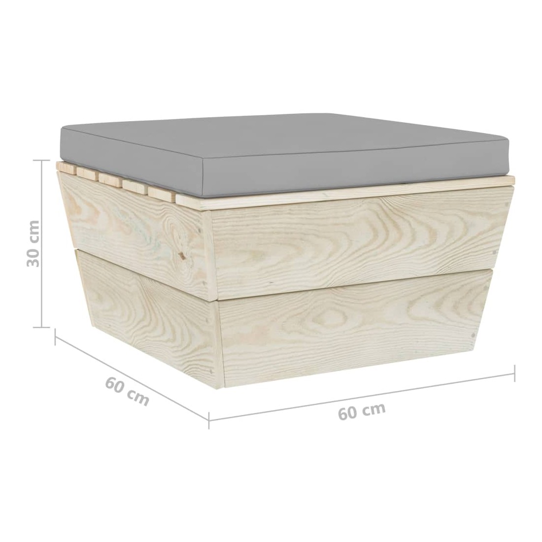 - Dimensions du pouf : 60 x 60 x 30 cm (l x P x H)