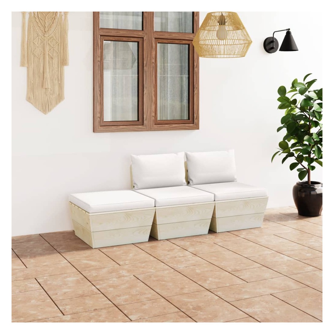 Salon de jardin palette 3 pcs avec coussins bois d'épicéa