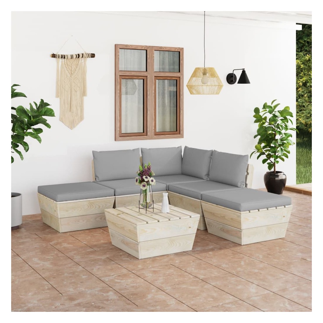 Salon de jardin palette 6 pcs avec coussins bois d'épicéa