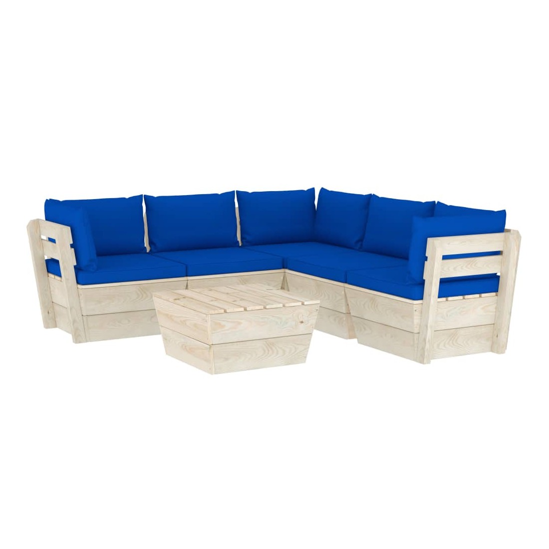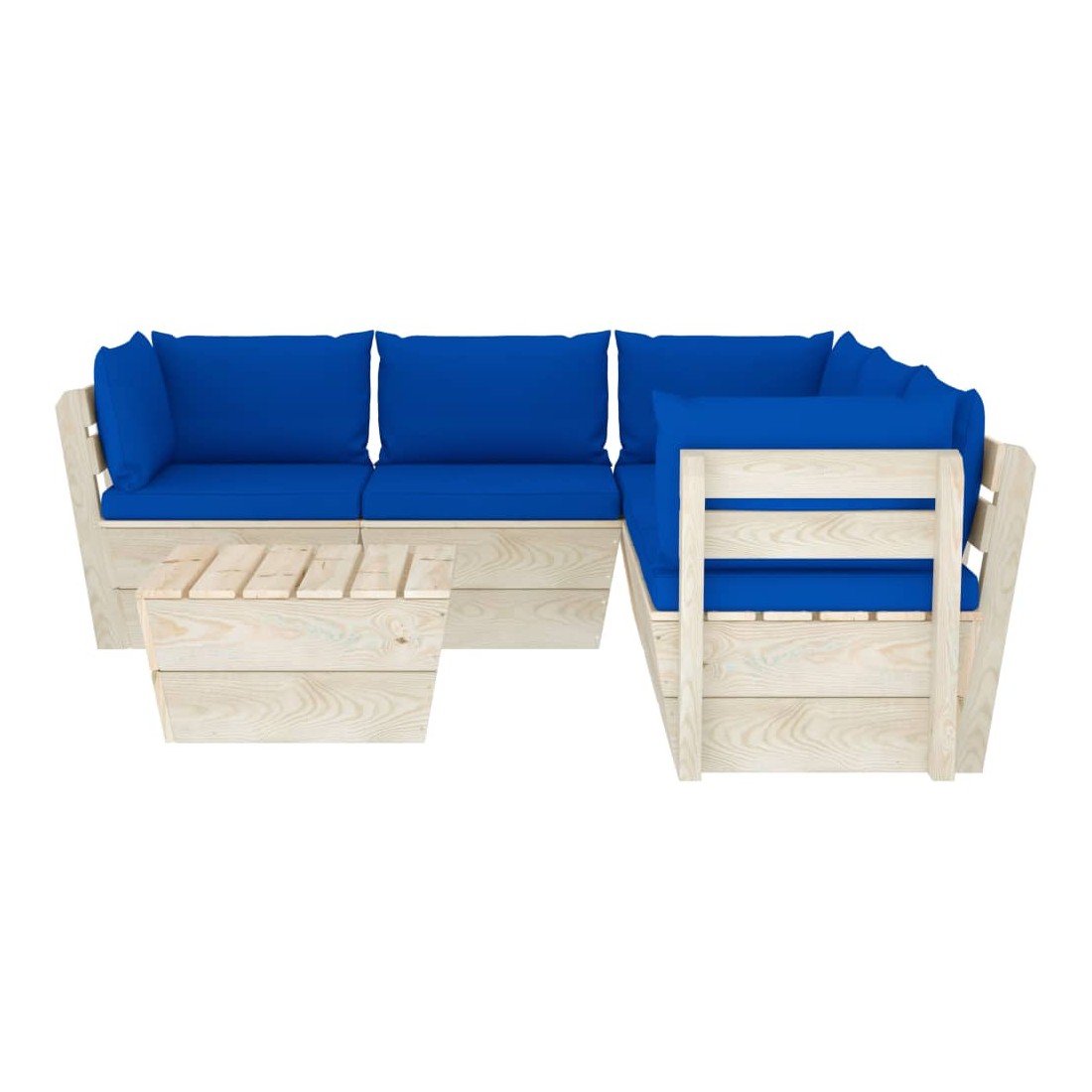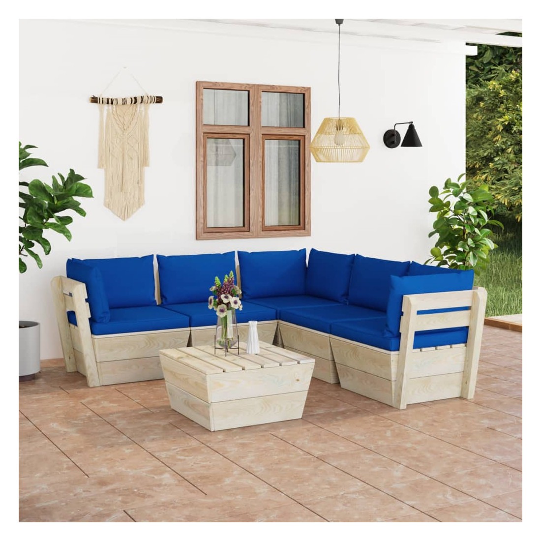 Salon de jardin palette 6 pcs avec coussins bois d'épicéa