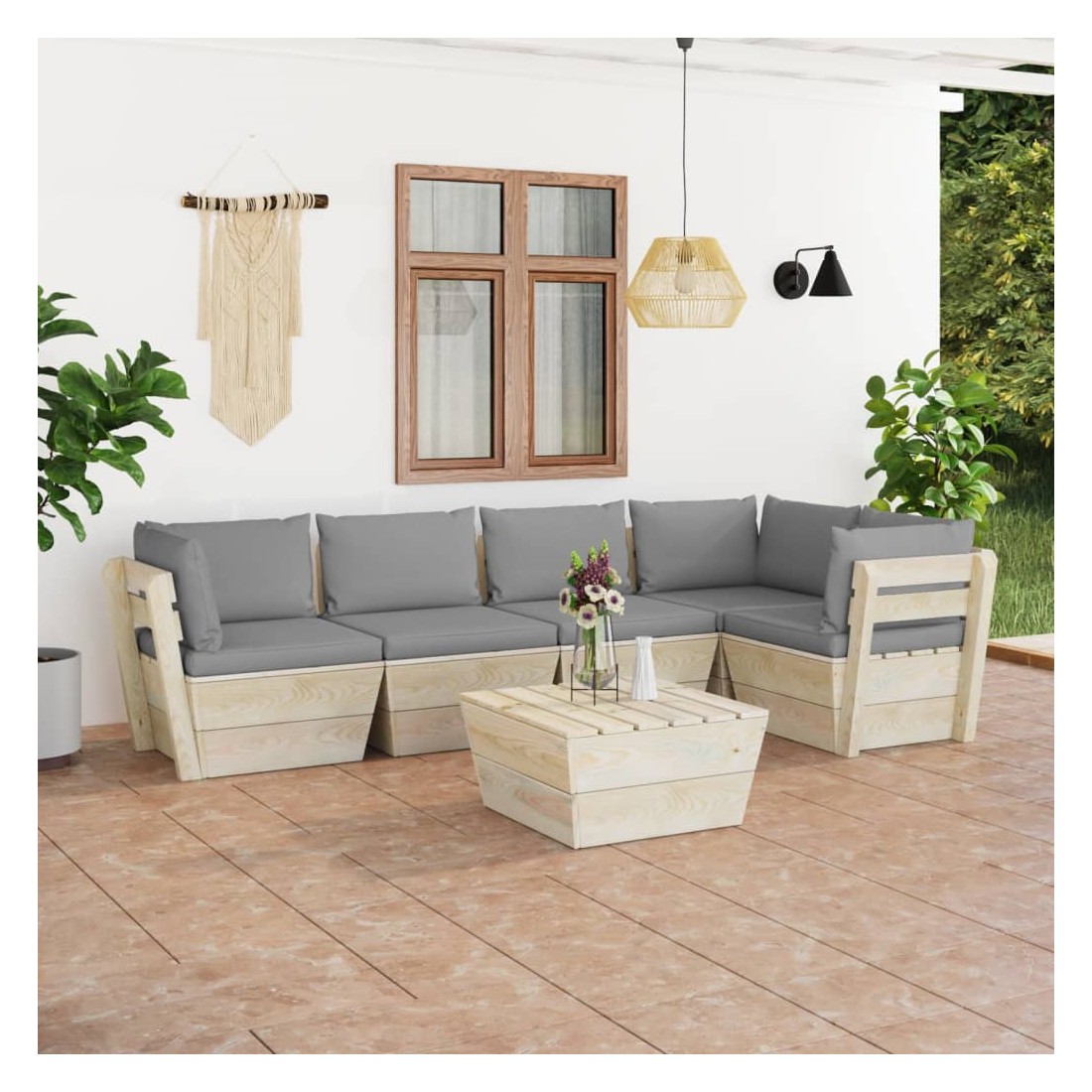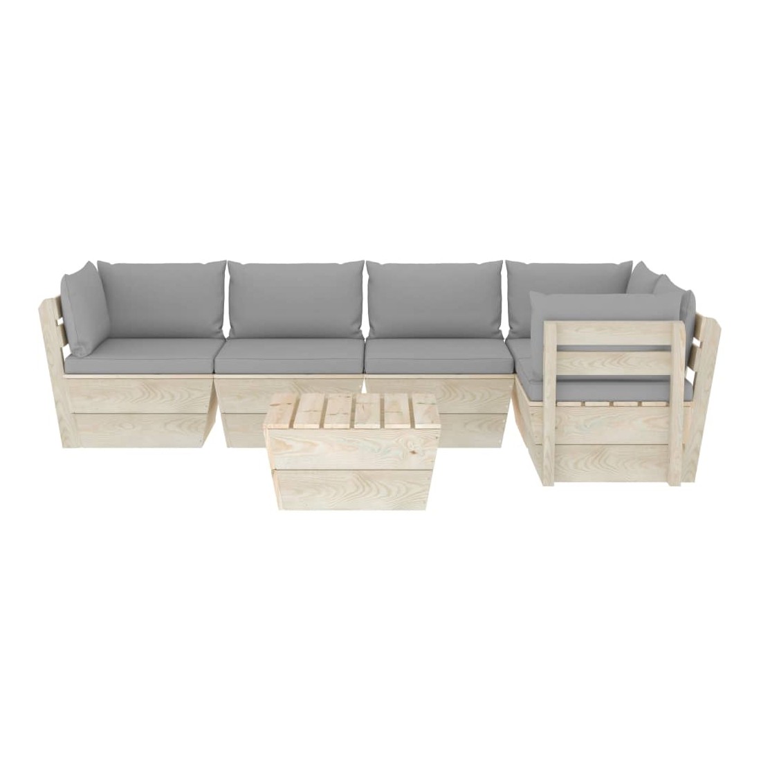 Salon de jardin palette 6 pcs avec coussins bois d'épicéa