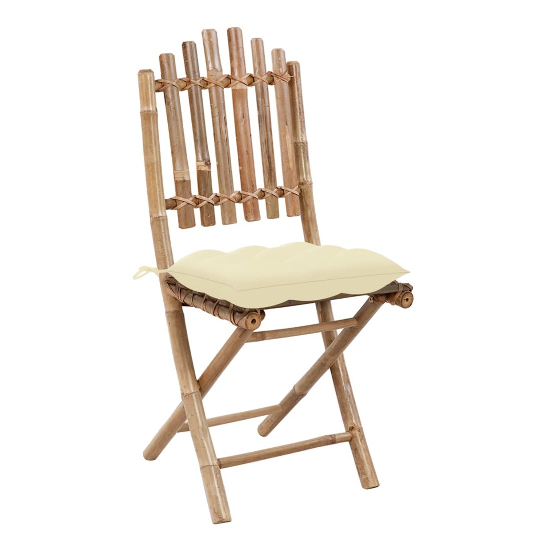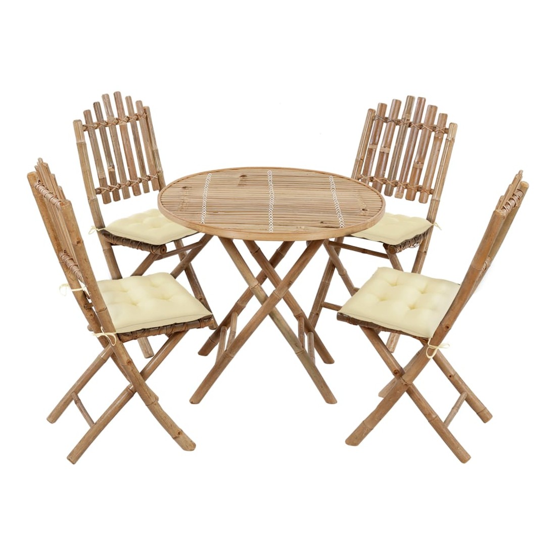 Cet ensemble de salle à manger en bambou avec coussins a un design élégant et ajoutera une touche de charme rustique à votre repas en plein air. Fabriqué en bambou massif, l'ensemble de salle à manger de jardin est résistant et durable. Il est également résistant aux intempéries et imperméable, et facile à nettoyer avec un chiffon humide. La table et les chaises sont toutes pliables pour économiser de l'espace de stockage lorsqu'elles ne sont pas utilisées. De plus, les coussins fournis offrent du confort supplémentaire lors de la détente. Il est composé à 100 % de polyester qui a été traité pour le rendre résistant à l'eau. Chaque coussin a deux jeux de cordes pour le fixer fermement sur la chaise de salle à manger. Remarque : afin de prolonger la durée de vie des meubles d'extérieur, nous vous recommandons de les protéger avec une housse imperméable.