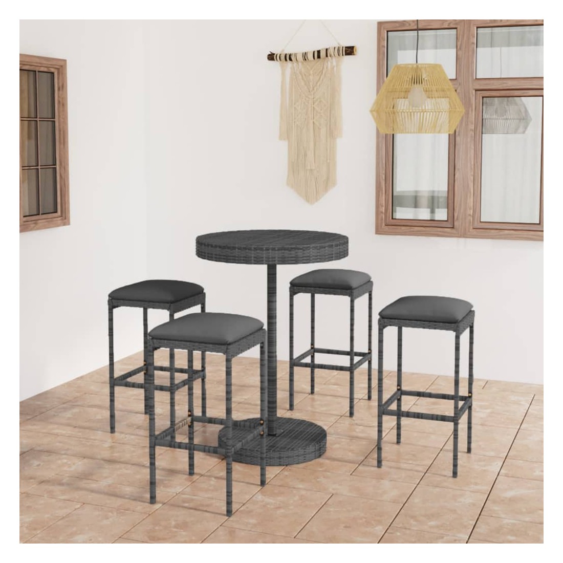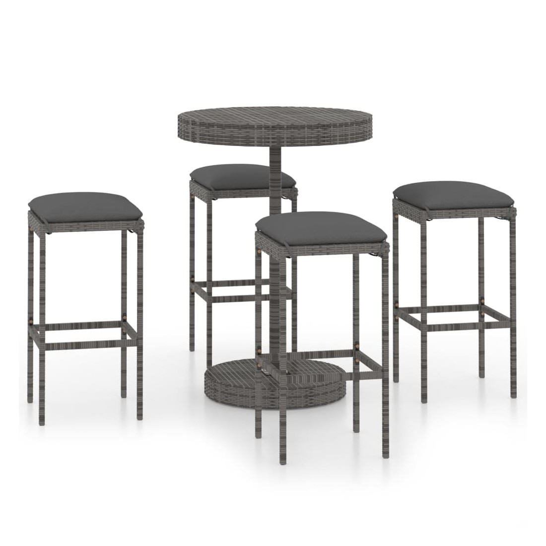 Cet ensemble élégant de bar de jardin vous permet de passer des moments agréables et confortables avec votre famille et vos amis. La table de bar est soutenue par un cadre en acier enduit de poudre, ce qui la rend stable et robuste. Le dessus de table rond est idéal pour placer des boissons, de la nourriture ou des objets décoratifs. Les tabourets ont une construction solide de cadre en acier et sont faits de résine tressée résistante aux intempéries, assurant la stabilité et sont faciles à déplacer. Le coussin et le repose-pied ajoutent également du confort d’assise supplémentaire au tabouret. La housse de coussin en polyester avec fermeture éclair dissimulée le rend facile à nettoyer.