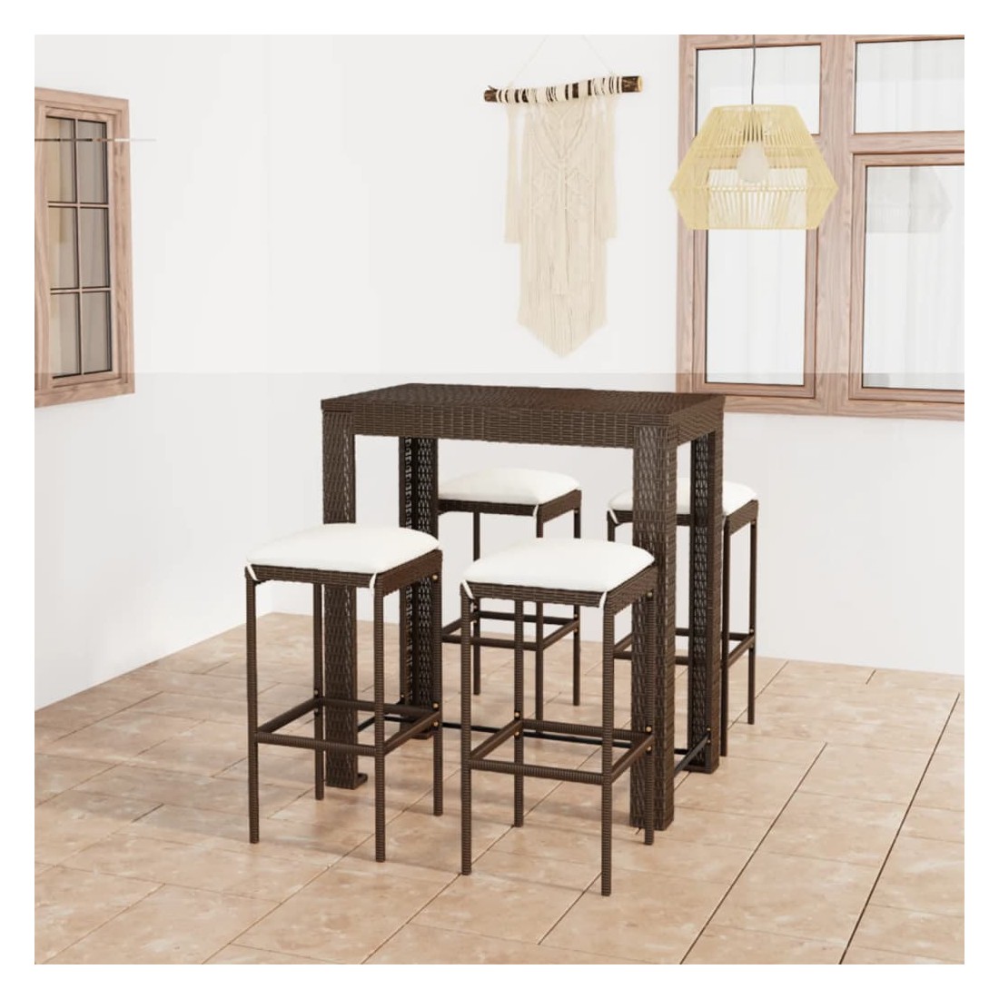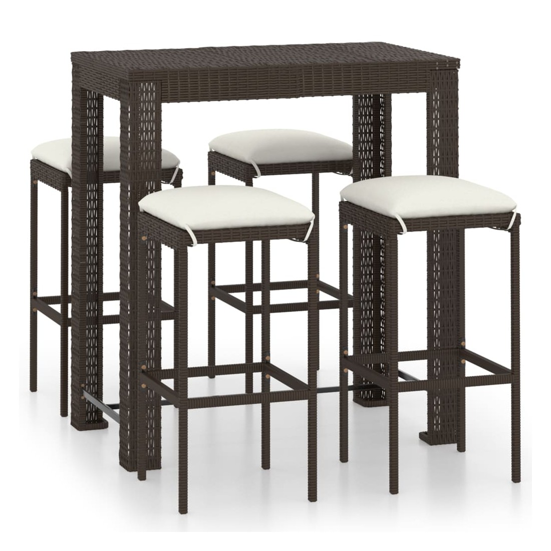 Meuble de bar de jardin 5 pcs et coussins Résine tressée Marron