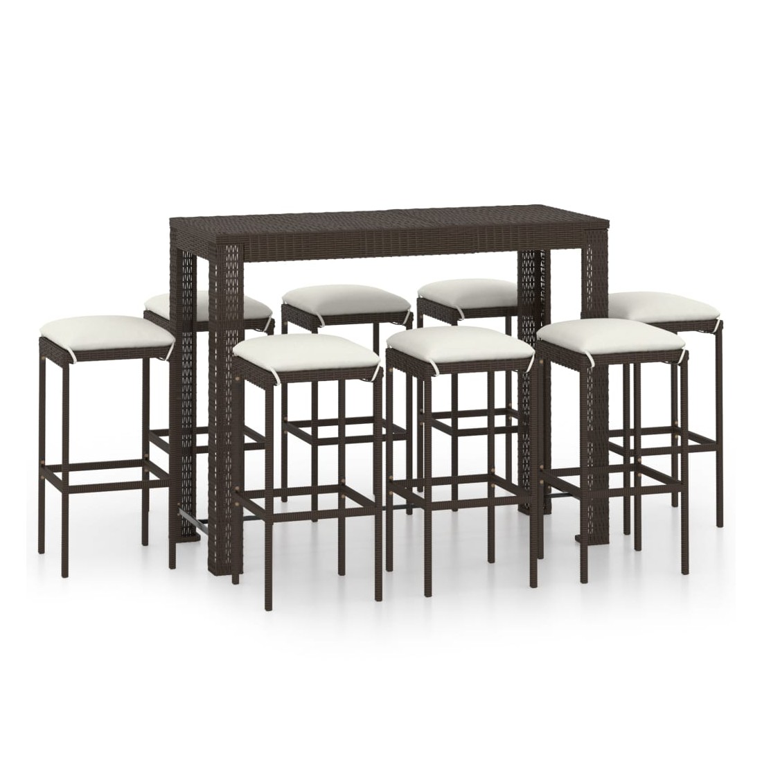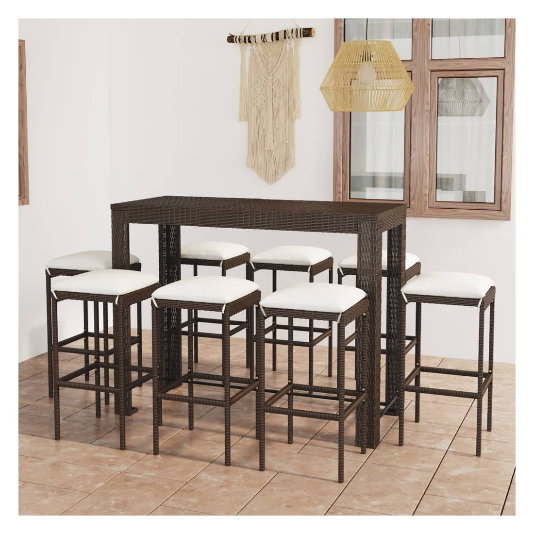 Ensemble de bar de jardin 9 pcs coussins Résine tressée Marron