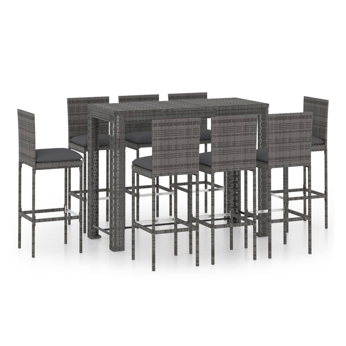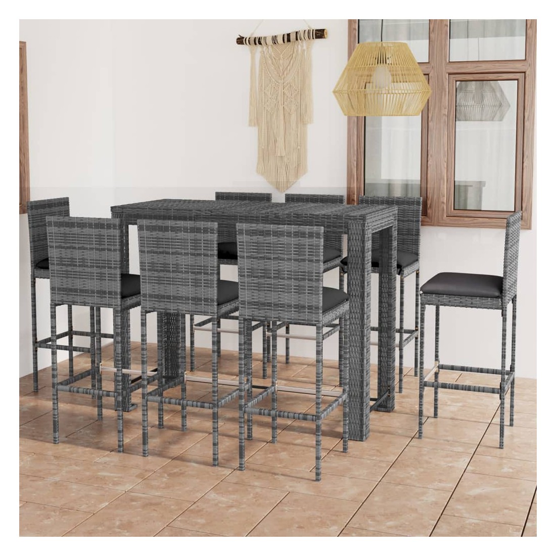 Ensemble de bar d'extérieur 9 pcs coussins anthracite Rotin