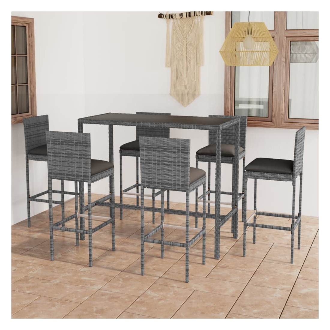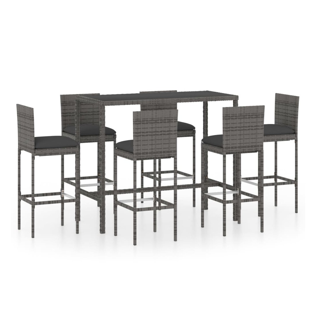 Ensemble de bar de jardin 7 pcs et coussins Résine tressée Gris