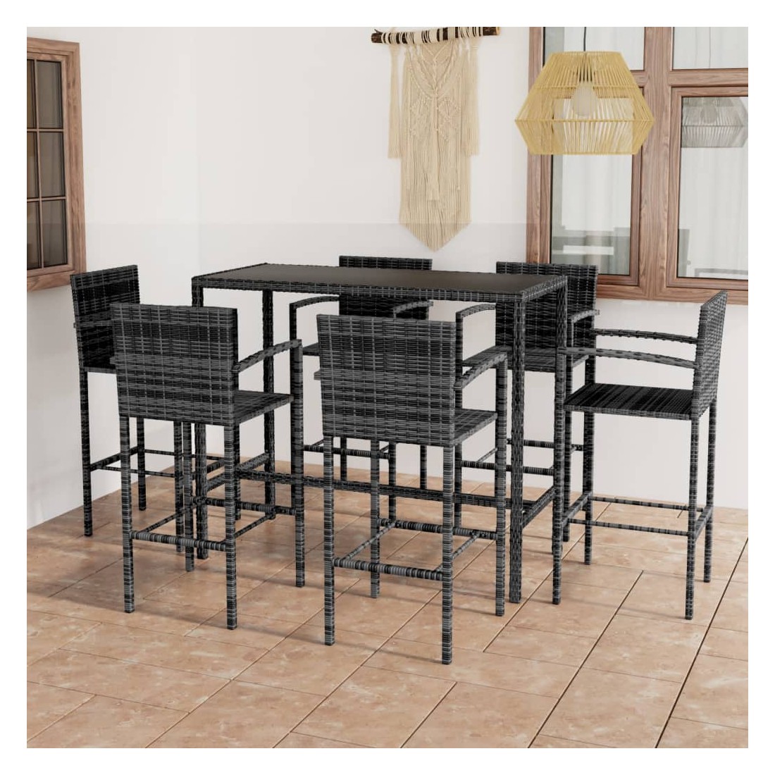 Cet élégant ensemble de bar de jardin offre un endroit agréable et confortable afin que vous puissiez profiter du temps avec votre famille et vos amis. Cette table de comptoir dispose d’un cadre en acier enduit de poudre recouvert de résine tressée résistante à l’eau, assurant des années d’utilisation à l’extérieur. De plus, le dessus de table en verre trempé facilite le nettoyage. Les tabourets ont un solide cadre en acier et sont fabriqués en résine tressée résistante aux intempéries, ce qui garantit leur stabilité et leur facilité de déplacement. Le dossier, l'accoudoir et le repose-pied intégré ajoutent également au confort d'assise du tabouret. Remarque : afin de prolonger la durée de vie des meubles d'extérieur, nous vous recommandons de les protéger avec une housse imperméable.