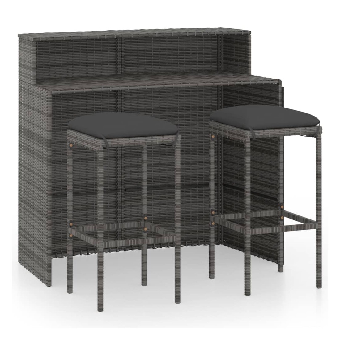 Ensemble de bar de jardin avec coussins 3 pcs Gris