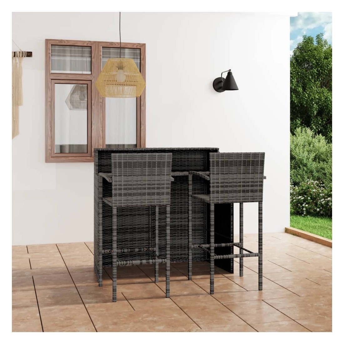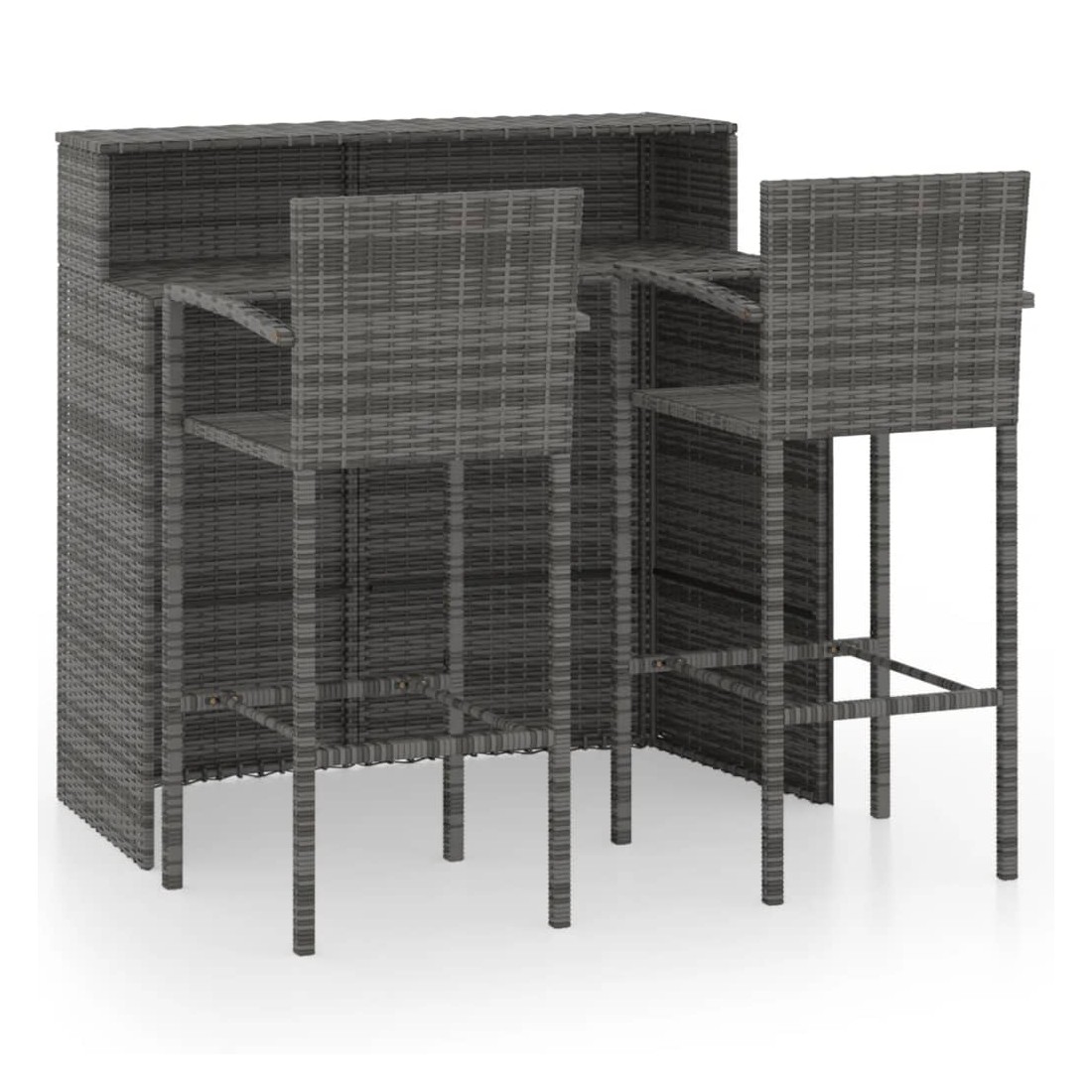 Cet ensemble de bar de jardin a un design élégant et sera le point de mire de votre jardin, patio ou terrasse. Fabriqué en résine tressée résistante aux intempéries et imperméable, cet ensemble de bar est facile à nettoyer, résistant à l'usure et adapté à une utilisation quotidienne. Le cadre en acier enduit de poudre rend la table et les tabourets très robustes et durables. Grace à la construction légère, tous les articles sont faciles à déplacer. Remarque : afin de prolonger la durée de vie des meubles d'extérieur, nous vous recommandons de les protéger avec une housse imperméable.