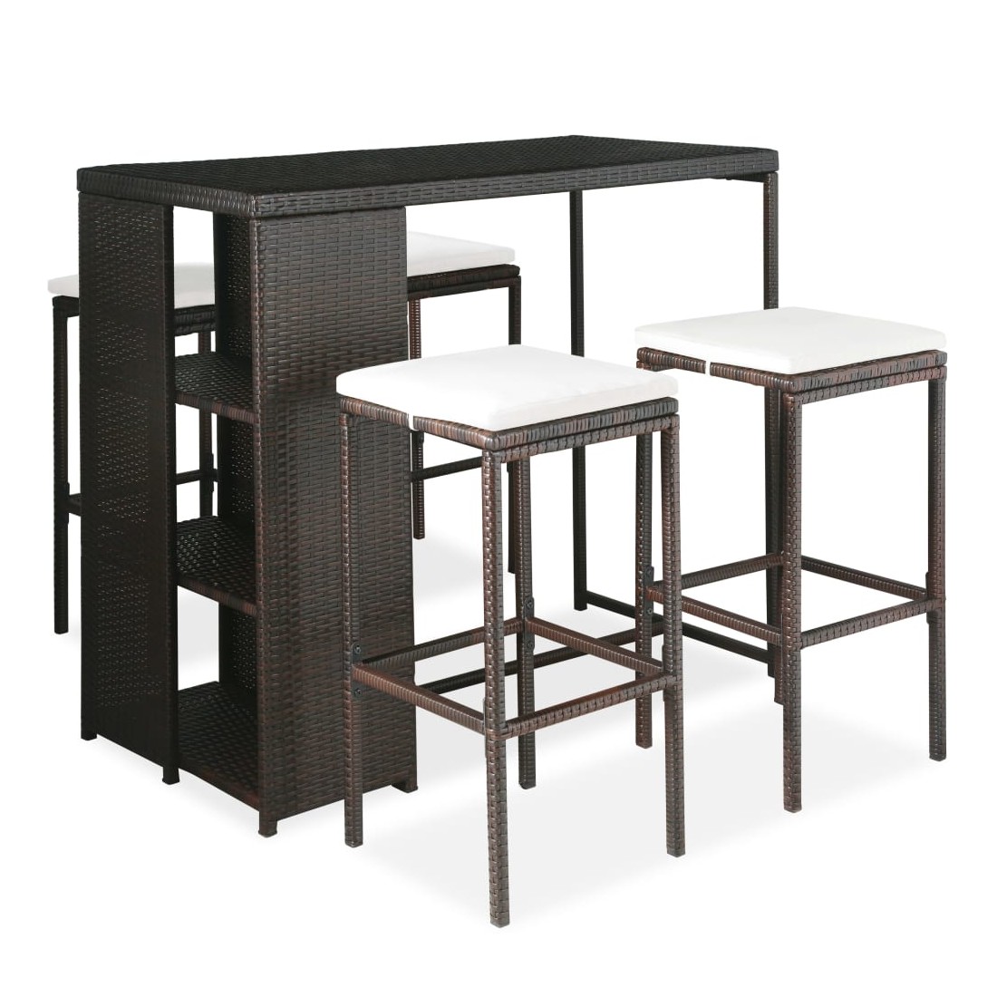 Ensemble de bar de jardin 5 pcs coussins Résine tressée Marron