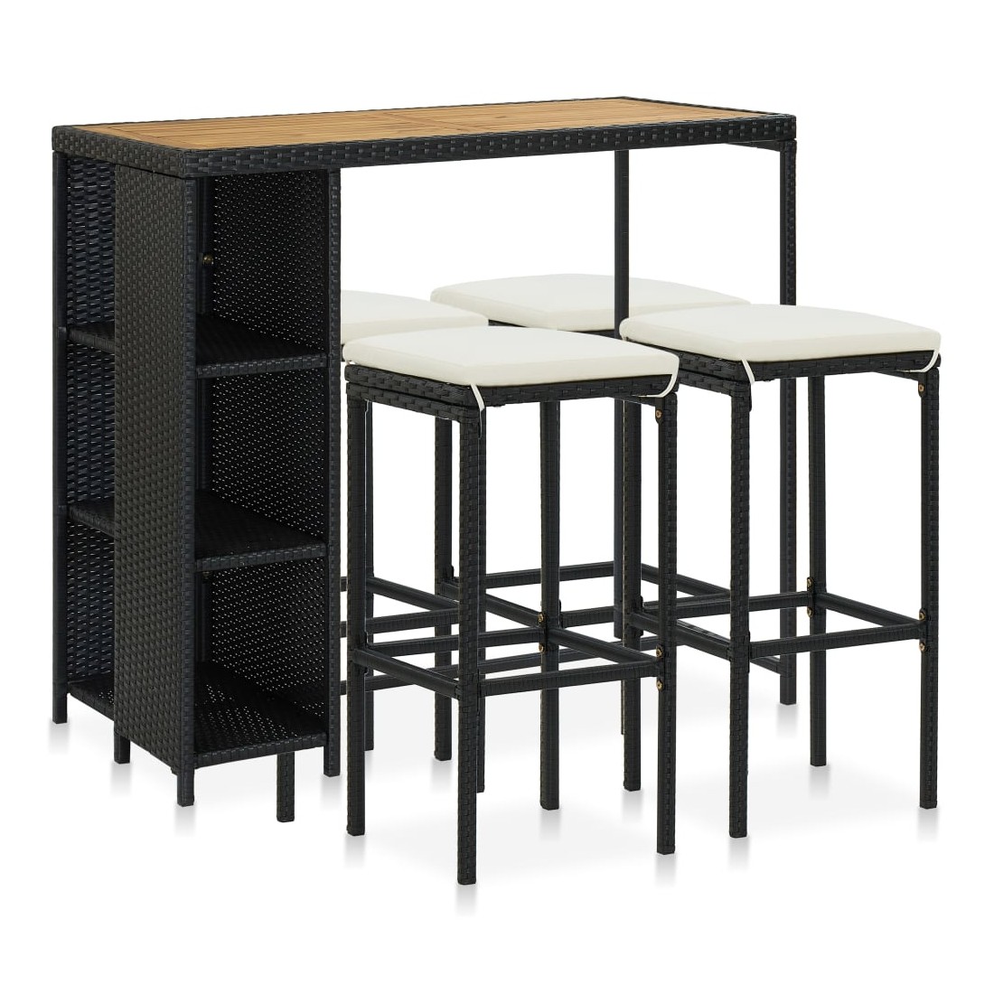 Ensemble de bar de jardin 5 pcs et coussins Résine tressée Noir