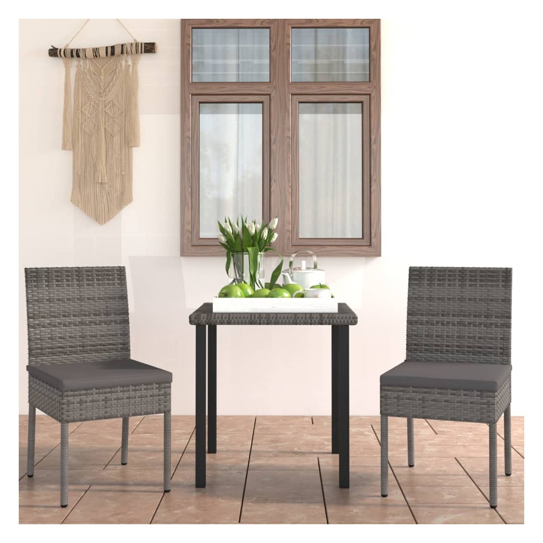 Ensemble à manger de jardin 3 pcs Résine tressée Gris