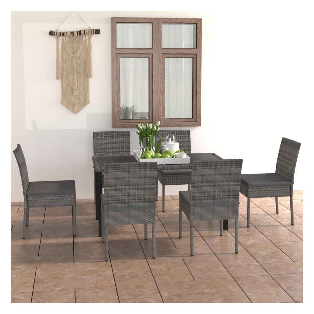 Ensemble à manger de jardin 7 pcs Résine tressée Gris