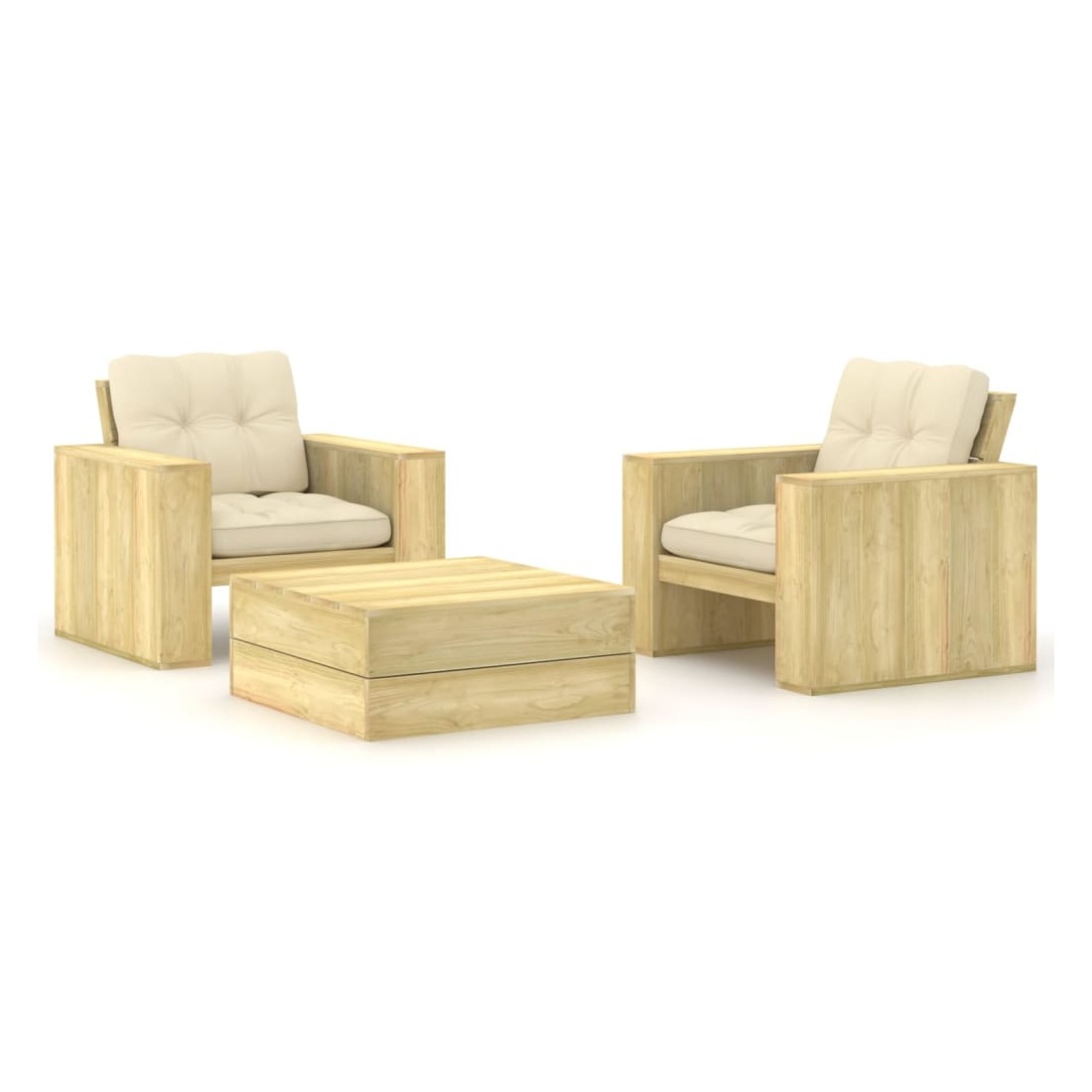 Salon de jardin 3 pcs avec coussins bois de pin imprégné