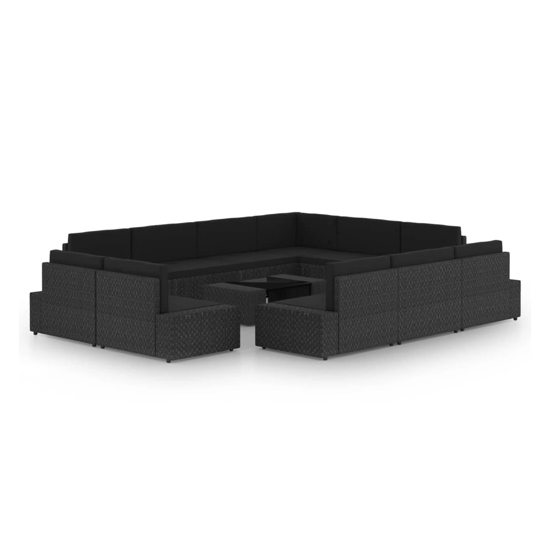 Salon de jardin 12 pcs avec coussins Noir Résine tressée