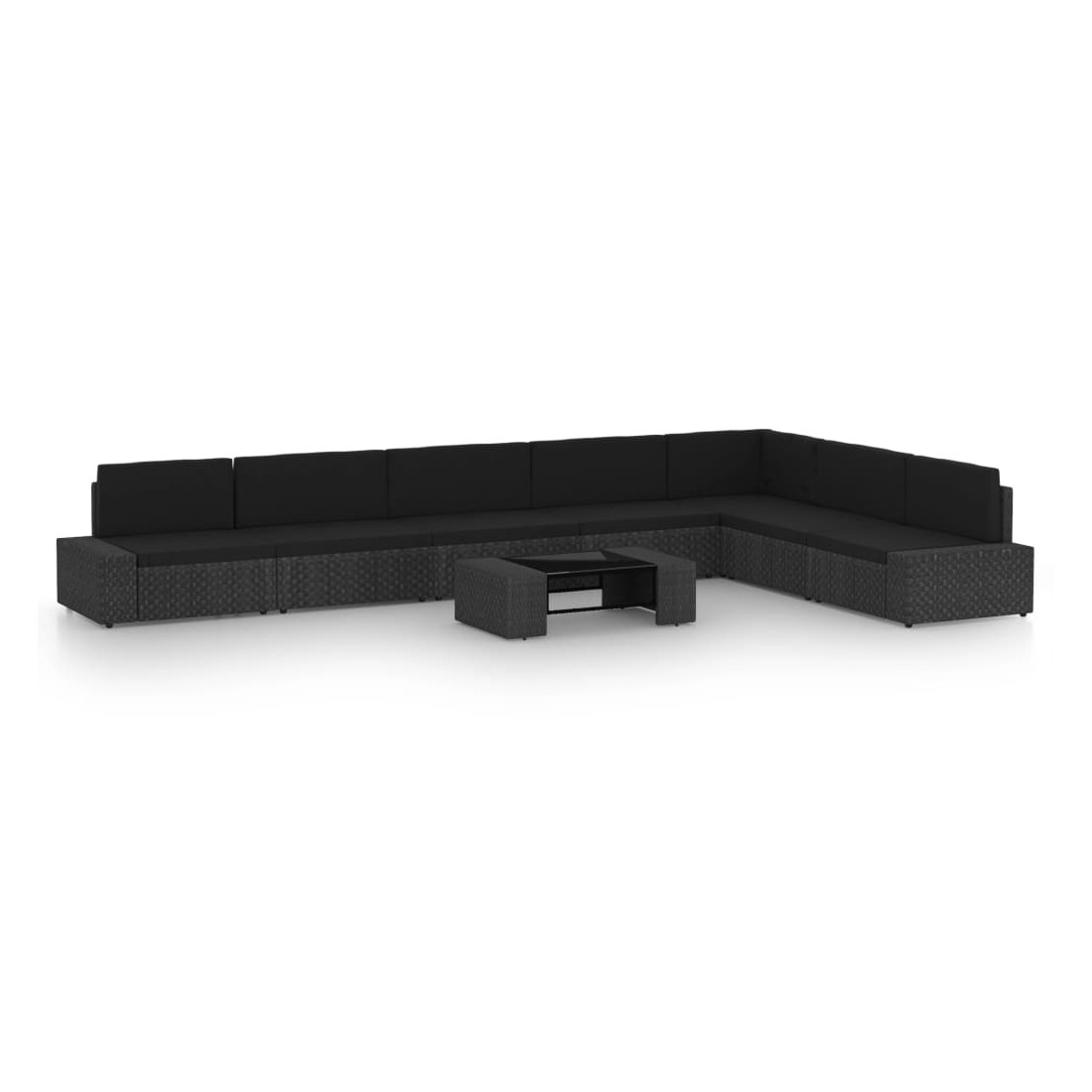 Salon de jardin 8 pcs avec coussins Noir Résine tressée