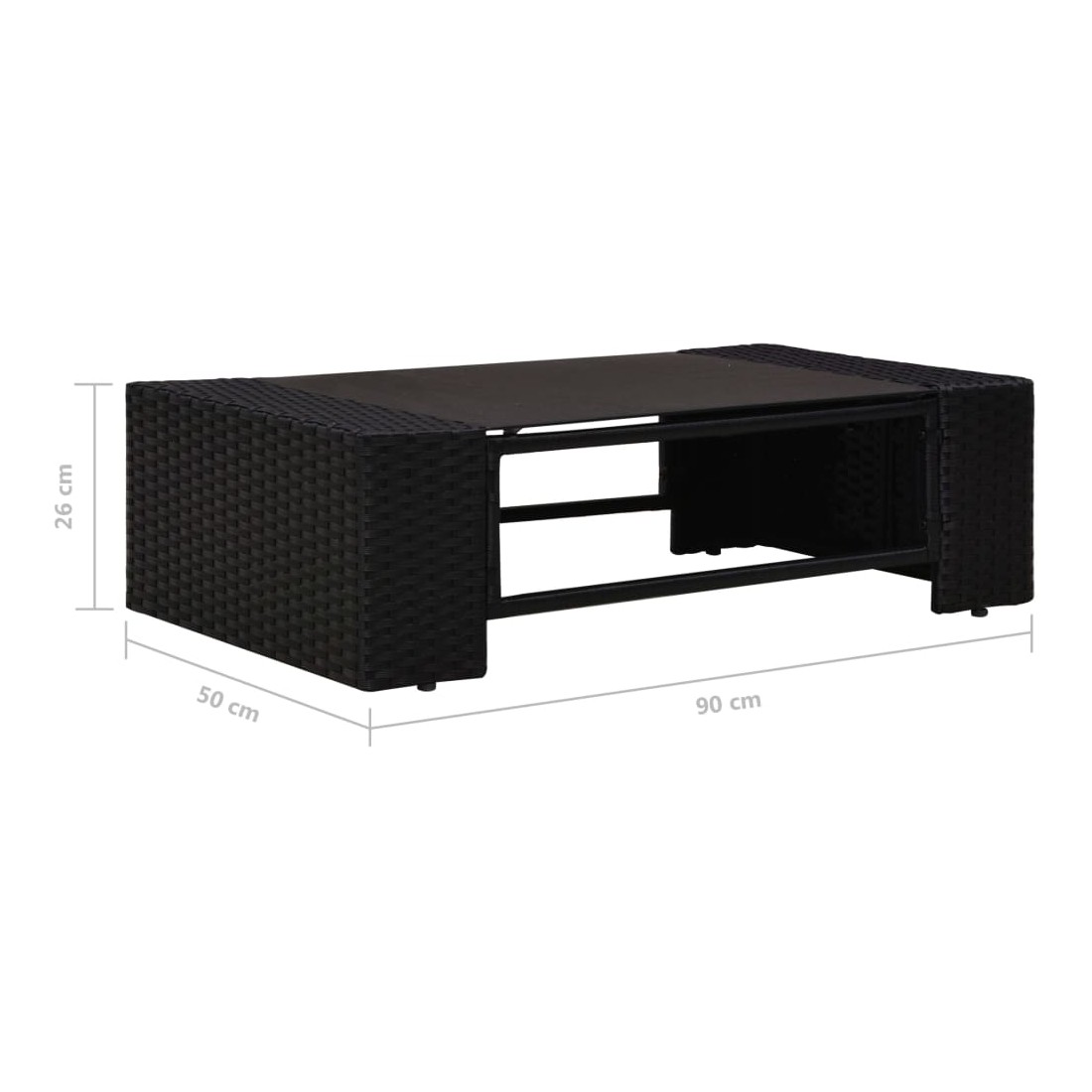 • Dimensions de la table basse : 90 x 50 x 26 cm (L x l x H)